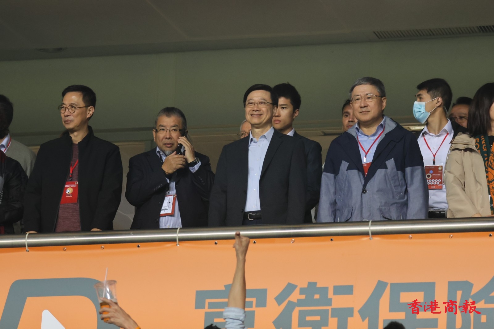 李家超於下半場中段進場觀戰(zhàn),親身感受現(xiàn)場氣氛,雖然香港明星隊隨即失守,被世界明星隊的大衛(wèi)韋拿攻破大門,落後1比6,但2分鐘後,香港明星隊立即作出反擊,並由李康廉回敬一球,射成2比6。在入球過程中,李家超、楊潤雄睇得相當投入及緊張,並且吶喊打氣,入球一刻,兩人更是起身拍掌慶祝,楊潤雄還豎起大拇指大讚!