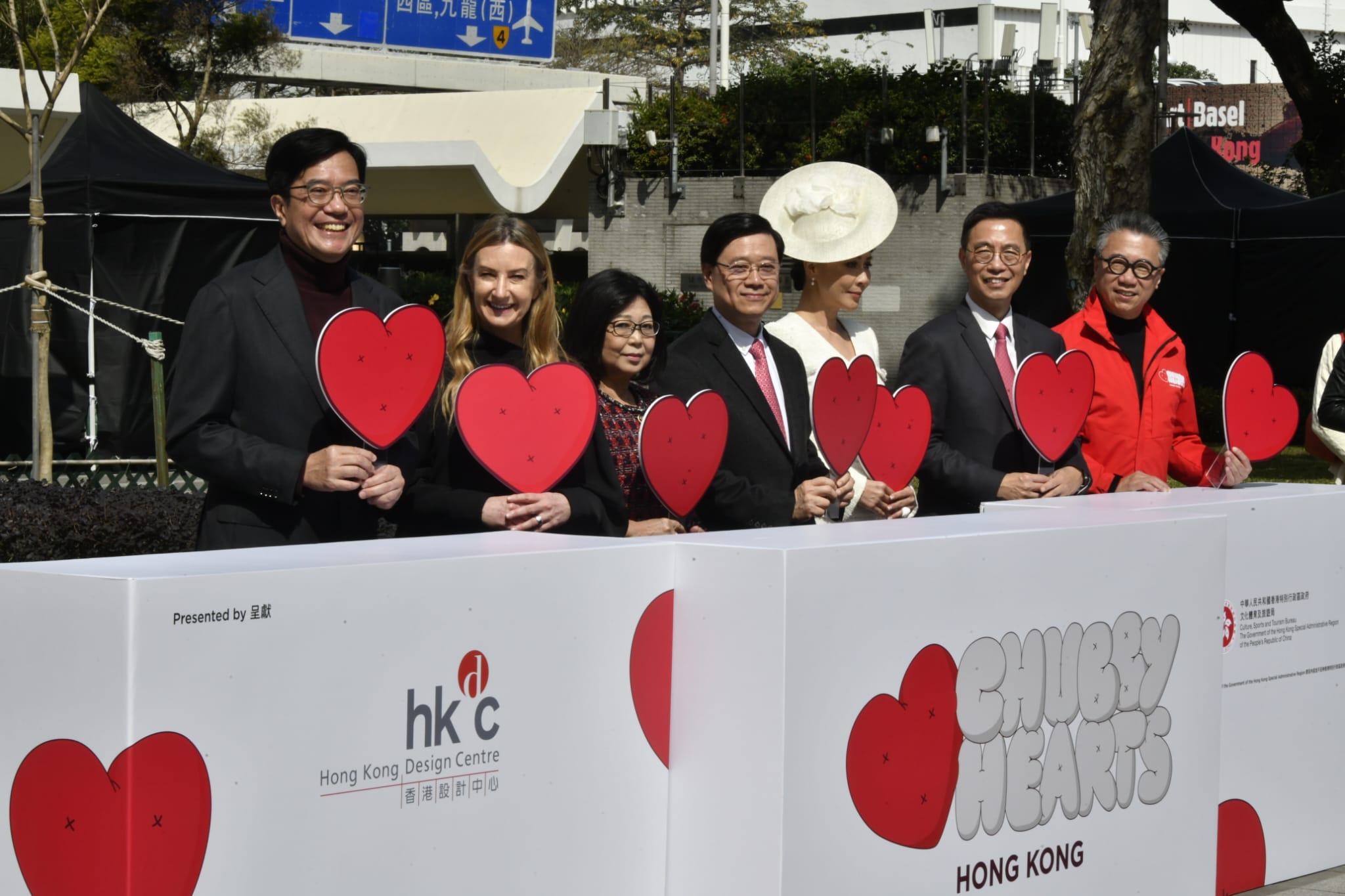 隨後,李家超與夫人及一眾主禮嘉賓進行啟動儀式,巨型紅心 Chubby Hearts 隨即升上半空,在中環(huán)皇后像廣場花園讓人拍照。