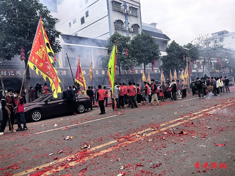 2月17日上午,記者來到該縣橫河鎮(zhèn)圩鎮(zhèn)看到,各村的買燈隊(duì)伍在激昂高亢的大鼓聲中走來,伴隨著鞭炮和大鼓的聲響,請(qǐng)花燈隊(duì)伍浩浩蕩蕩地遊行而過,每個(gè)村的買燈隊(duì)伍都足有上百人。買燈隊(duì)伍從村里來到圩鎮(zhèn)後,還會(huì)在鎮(zhèn)上走街串巷,給搬到鎮(zhèn)上居住的同姓村民拜年。