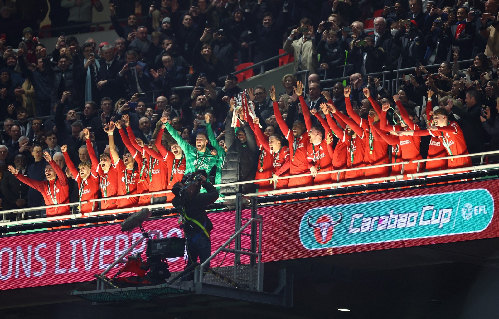 戰(zhàn)至118分鐘,華基爾雲(yún)迪積克接應(yīng)森美卡斯右路開出的角球,銅頭破網(wǎng),最終紅軍憑著這個(gè)絕殺入球,以1比0險(xiǎn)勝車仔,第10次捧走英聯(lián)盃冠軍的同時(shí),亦為早前宣布於季尾卸任的領(lǐng)隊(duì)高普送上告別前的第一份禮物。(文:志誠 圖:路透社)