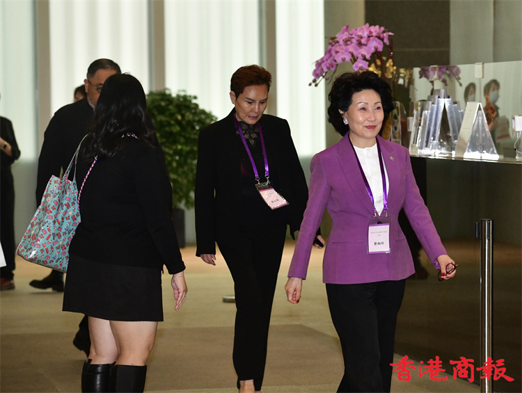 香港中華聯(lián)誼會會長鄭翔玲(右一)及右二香港四川社團總會會長唐安英(右二)步入會場。