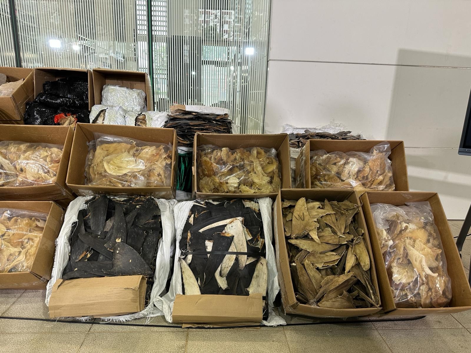 海關(guān)有組織罪案調(diào)查科特別調(diào)查第一組調(diào)查主任胡雪兒表示,檢獲的魚翅共1285公斤,市值640萬元。經(jīng)漁護(hù)署初步核實(shí),證實(shí)該批是受管制魚翅,屬保護(hù)瀕危動植物種條例附錄Ⅱ所列的瀕危物種,因未能出事相關(guān)許可證,海關(guān)正循走私方向調(diào)查,貨物最後運(yùn)往澳門或轉(zhuǎn)口到其他地方,不排除貨物運(yùn)返內(nèi)地,案件仍在調(diào)查中,暫時(shí)未有人被捕。(記者區(qū)天海)