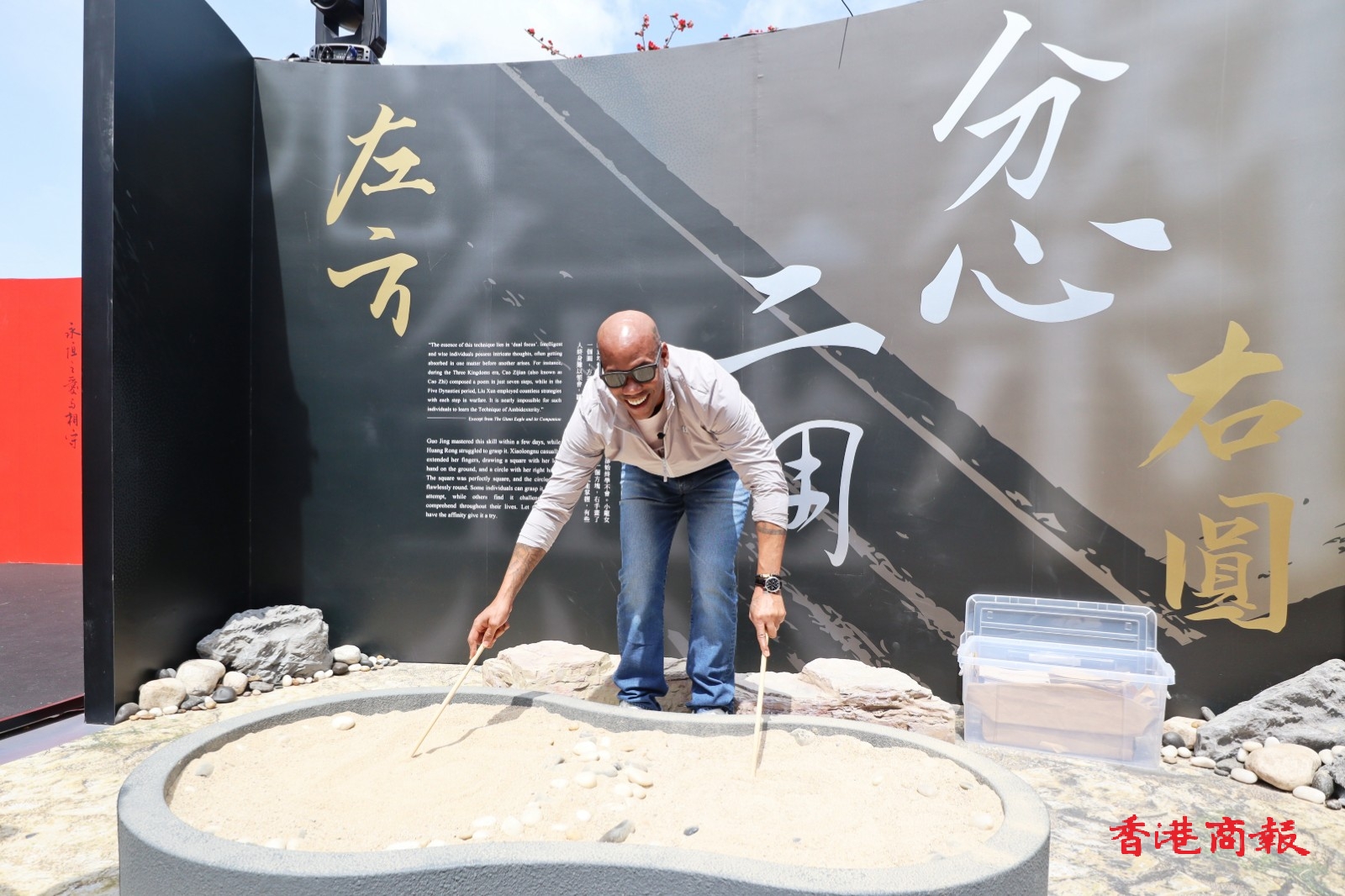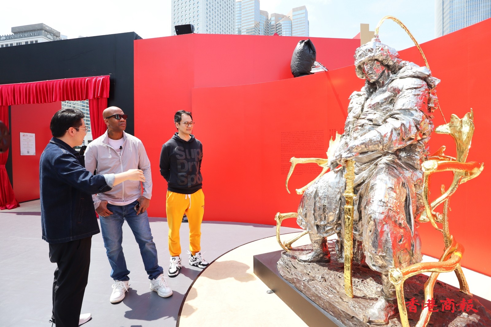去年11月透過高端人才通行證計(jì)劃(「高才通」)來(lái)港發(fā)展和居住的籃球名宿馬貝利(Stephon Marbury),今午(22日)到中環(huán)愛丁堡廣場(chǎng)與策展人方圓明及著名雕塑藝術(shù)家任哲,參觀「?jìng)b之大者」金庸百年誕辰紀(jì)念展覽。差不多每個(gè)展區(qū)都成為馬貝利的打卡熱點(diǎn)。