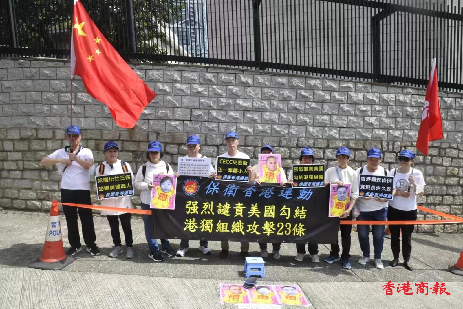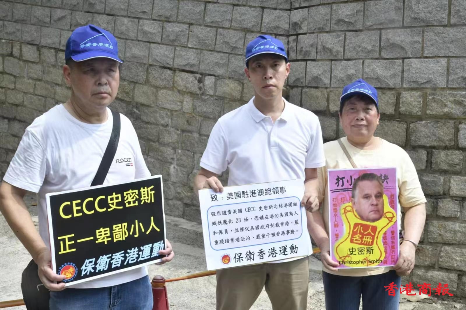 港區(qū)省級政協(xié)委員聯(lián)誼會(huì)、「保衛(wèi)香港運(yùn)動(dòng)」、元朗一批自發(fā)市民今日(24日)先後到美國駐港領(lǐng)事館請願(yuàn),強(qiáng)烈譴責(zé)美國國會(huì)暨行政當(dāng)局中國委員會(huì) (CECC)主席史密斯,妖魔化《維護(hù)國家安全條例》,恐嚇在港的美國商人和僱員,並催促美國政府制裁香港。