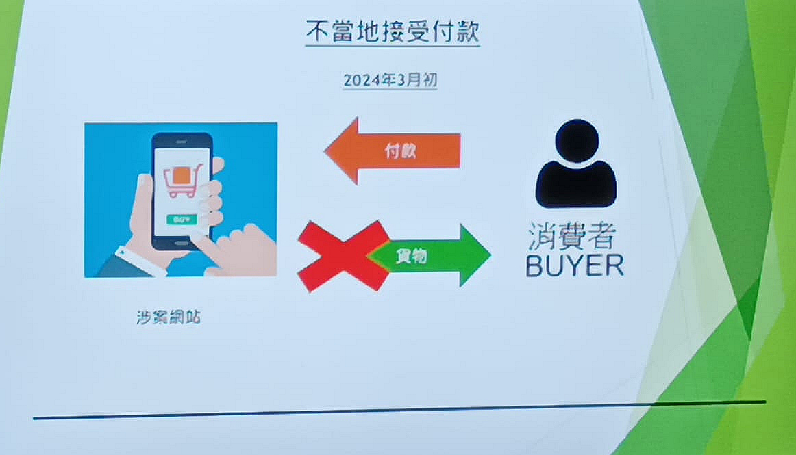 海關商品說明調查科商品說明課高級調查主任林艷蘭今日表示,近日接獲投訴指一間網上生活用品代購公司突然結業(yè),受害人多次聯絡該公司但沒有回應,網店登記地址亦人去樓空,預購用品的顧客至今仍未獲得貨品和退款蒙受損失。