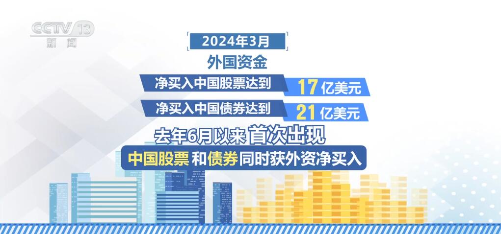 國際金融協會(IIF)最新報告顯示,2024年3月,外國資金淨買入中國股票和債券分別達到17億美元和21億美元,這是去年6月以來首次出現中國股票和債券同時獲外資淨買入。