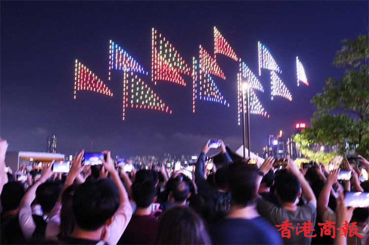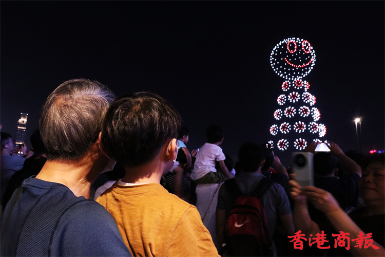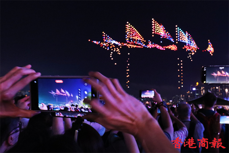 灣仔海濱對出海面今晚8時上演旅發(fā)局舉行的首場定期無人機表演,長約10分鐘。為配合下星期來臨的佛誕及太平清醮,表演以這兩大節(jié)慶為設(shè)計重點,推廣傳統(tǒng)特色,由1000架無人機於維港上空約90米,以不同動態(tài)陣列展現(xiàn)特色圖案,包括巨大平安包、大包山、太平清醮花牌、醒獅、平安結(jié)等。表演期間,現(xiàn)場將同步播放表演音效。(馮瀚文攝)