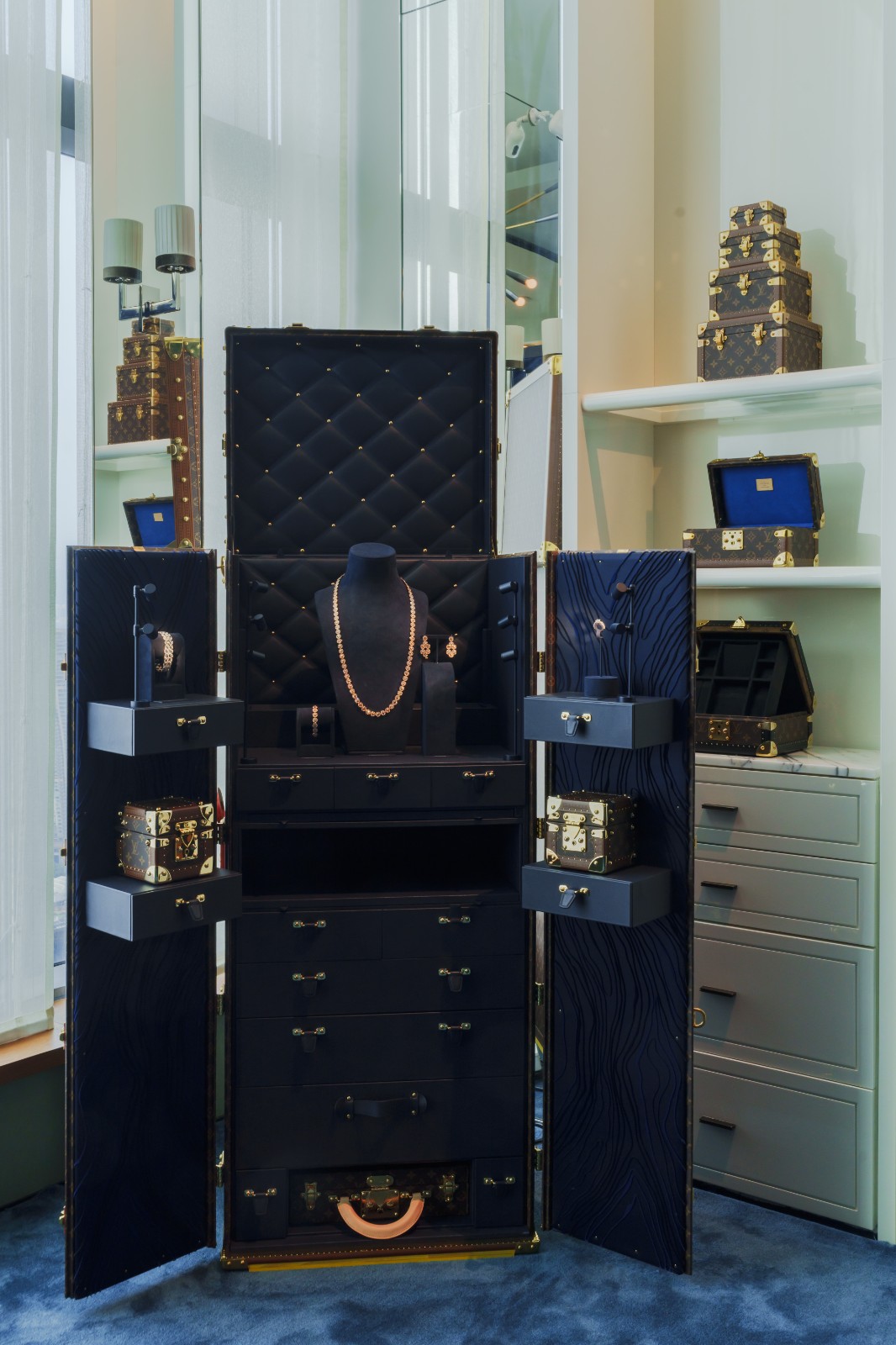 「Women’s Boudoir」區(qū)域以女性藝術(shù)品為主要內(nèi)容,展示了充滿創(chuàng)意的秋冬2024女裝Icones Flight Mode系列、復(fù)古風(fēng)格的Courrier Lozine 110和Malle Pyramide等作品。澳洲籍設(shè)計(jì)大師 Marc Newson 創(chuàng)作的Cabinet of Curiosities櫃子,採(cǎi)用可自由組合的皮革立方體,既實(shí)用又時(shí)尚,綴以粉紅色內(nèi)層的Malle Coiffeuse皮箱則體現(xiàn)出優(yōu)雅氣質(zhì)。 Objets Nomades系列作品也令人眼前一亮,如Fernando & Humberto Campana的Bomboca沙發(fā)等。