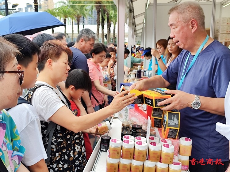 第二屆同鄉(xiāng)社團(tuán)家鄉(xiāng)市集嘉年華進(jìn)入第二天。今日(2日)天公造美,整天放晴,人流不絕,場內(nèi)氣氛熱鬧不已。另一方面,多個同鄉(xiāng)社團(tuán)連續(xù)第二年參加,亦有今年才加入的香港新疆聯(lián)誼會、香港內(nèi)蒙古社團(tuán)聯(lián)誼總會,帶來當(dāng)?shù)靥禺a(chǎn)推介給市民,至今合共逾220個展銷攤位,110多萬件家鄉(xiāng)特產(chǎn),總值逾3000多萬港元帶來當(dāng)?shù)靥禺a(chǎn),吸引不少市民購買。(馮瀚文攝)