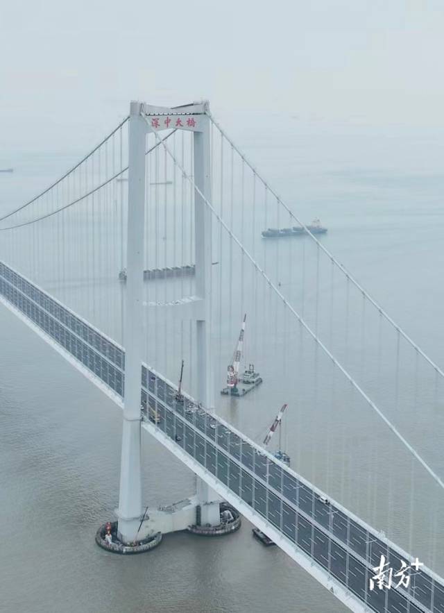 端午時節(jié),豐潤的雨水將深中通道洗刷一新,迎接即將到來的通車時刻。6月7日,在深中通道世界最大跨徑全離岸海中鋼箱樑懸索橋橋塔上,「深中大橋」四個字赫然可見,這座此前被稱為伶仃洋大橋的「世界之橋」,有了新的名字。