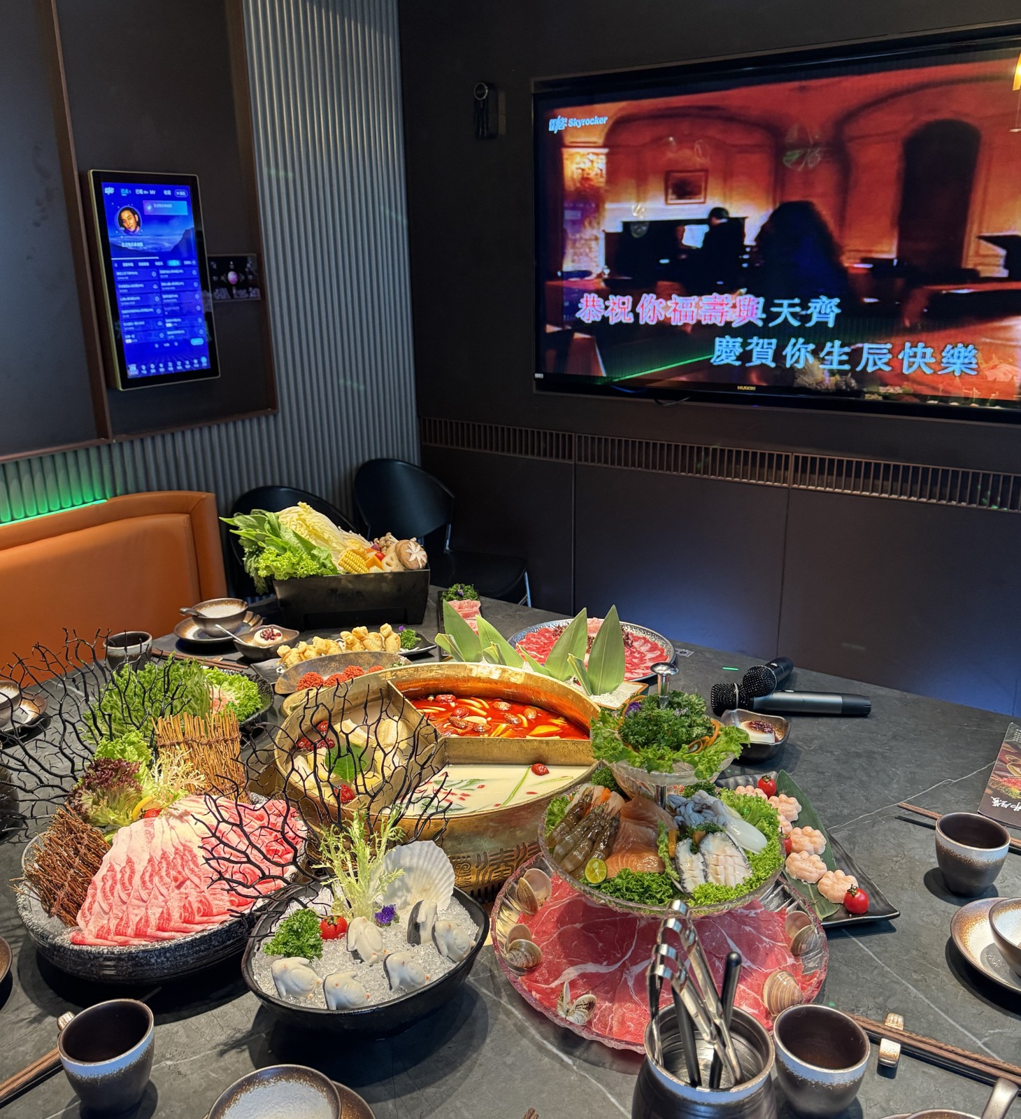 元朗新店設(shè)有K房包廂,食客可邊吃火鍋邊唱K。