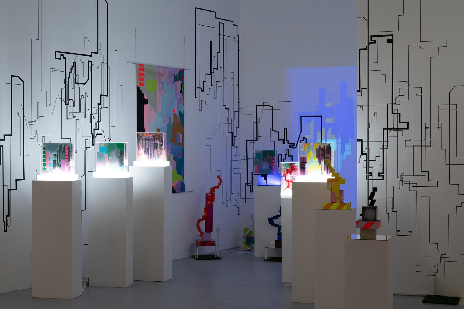 「城事」主題部分以城市敘事為主題,通過不同媒介捕捉香港的城市景觀,並把藝術(shù)作品中的符號(hào)和故事等表達(dá)作為藝術(shù)家回應(yīng)香港當(dāng)前和未來狀態(tài)的寓言。澳洲藝術(shù)家Merryn Trevethan的藝術(shù)裝置作品《Frequently Lost》以螢光色的高層建築亞克力雕塑展示了城市的多面性,而二人組合藝術(shù)家左沁悅和鄭樂怡的錄像作品《B?n \o-o/ c|e》則邀請(qǐng)觀眾以第一人稱視角體驗(yàn)當(dāng)代城市的景象?!肝幕蝗趯?shí)驗(yàn)室(C-Lab)」則透過展出與文化交融相關(guān)的藝術(shù)作品,從藝術(shù)家的實(shí)踐背後探討香港的文化混雜現(xiàn)象。