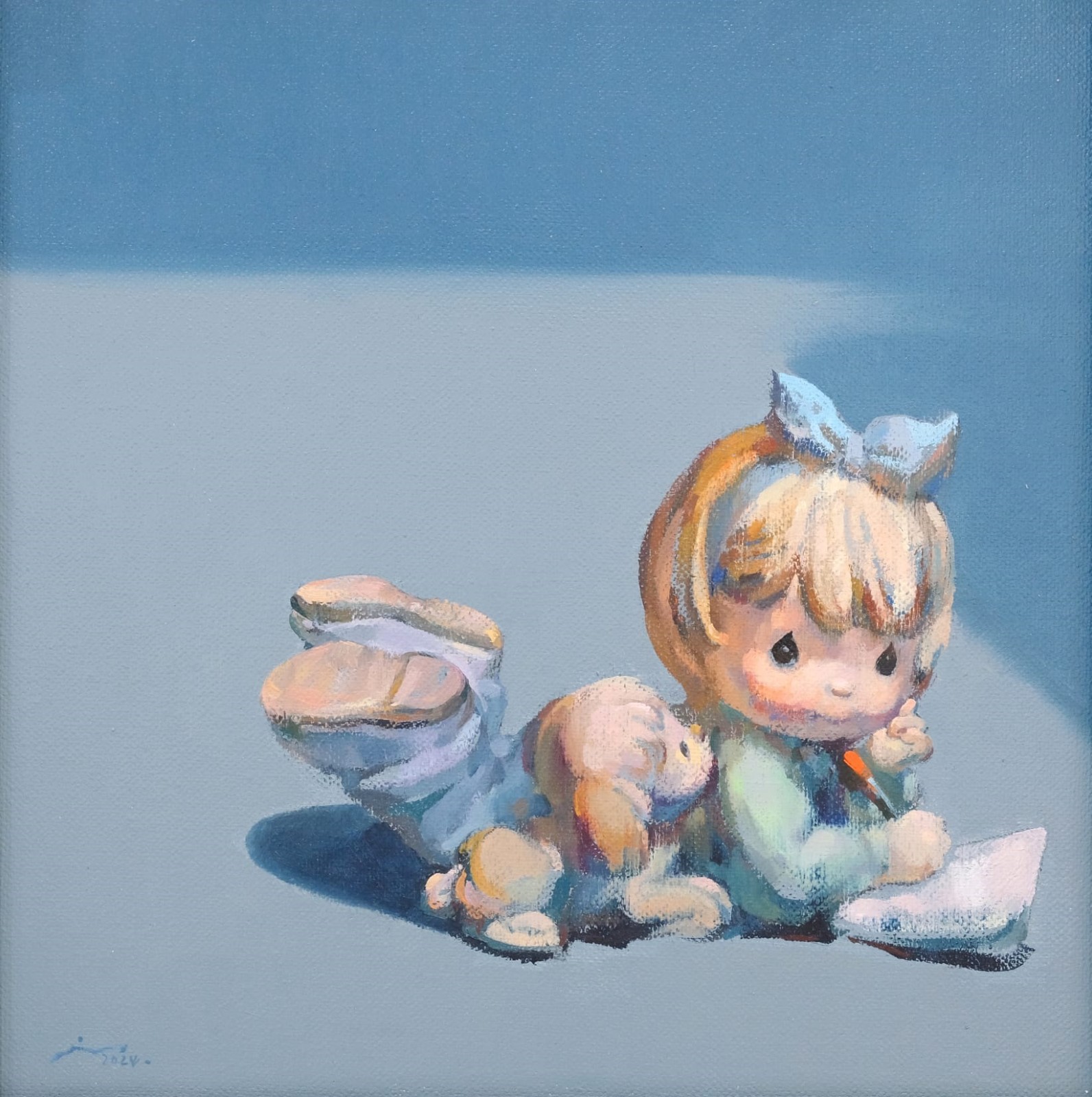 展覽一次過展出藝術(shù)家廖井梅與許劍豪的最新油畫作品,在廖井梅的眼中,禮物是友人送贈的小物件、買給女兒的小玩偶,因此創(chuàng)作出《禮物一》《粉紅兔子》《快樂時(shí)光》等畫作。除物件外,空間也可以是一份承載回憶的禮物,許劍豪筆下的香港是一個現(xiàn)實(shí)與幻想交融的微縮景觀,他將對香港的情感投射到畫中。正如法國哲學(xué)家加斯東.巴舍拉(Gaston Bachelard) 認(rèn)為,童年最初看到的世界,是一個充滿美麗色彩的圖畫般的世界。人的想像力和夢境,都建立在對這個充滿原初色彩的童年世界的回憶之上。就像物質(zhì)本身並無意義,但由於人的意識與感知,為其賦予了另一重的意義。