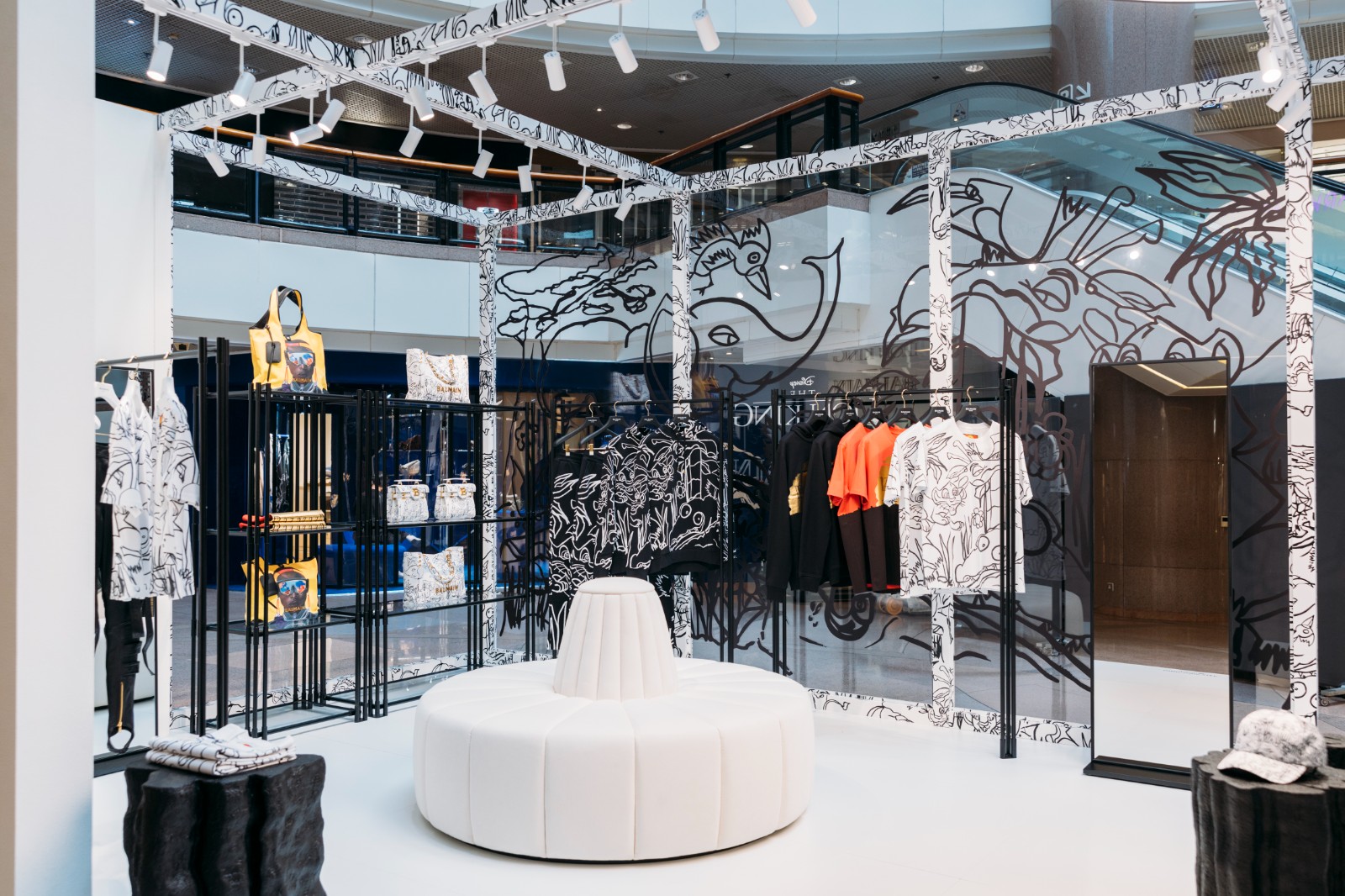 限定店從系列汲取靈感,將畫家Enfant Precoce創(chuàng)作的印花圖案融入布置,空間以黑白色為主調,並以不同顏色點綴,呈現(xiàn)非洲風情的編織工藝、特色圖騰、精緻的刺繡及剪裁。 (記者、部分圖片:Janice)