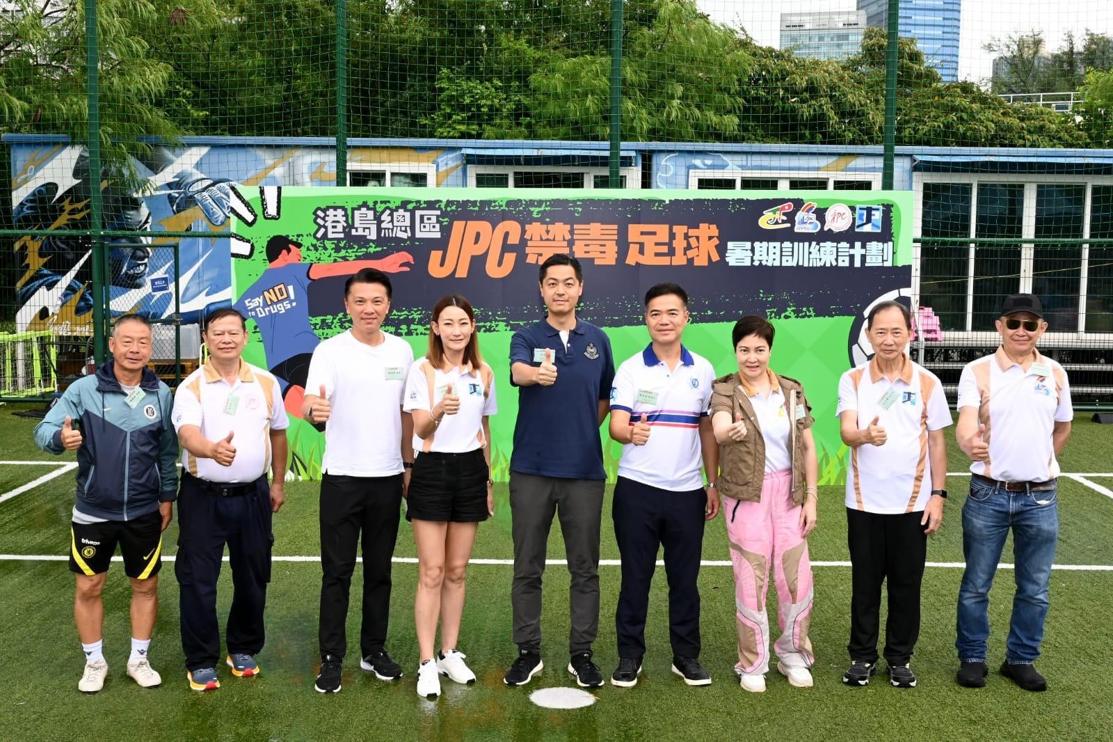 警務(wù)處東區(qū)警區(qū)今日(16日)在藍(lán)田茜草灣車路士足球訓(xùn)練學(xué)校(香港)舉辦「港島總區(qū)少年警訊,禁毒足球暑期訓(xùn)練計(jì)劃」開球禮。來自西區(qū)、中區(qū)、灣仔區(qū)及東區(qū)的少年警訊足球隊(duì)將展開為期兩個(gè)月的訓(xùn)練計(jì)劃。