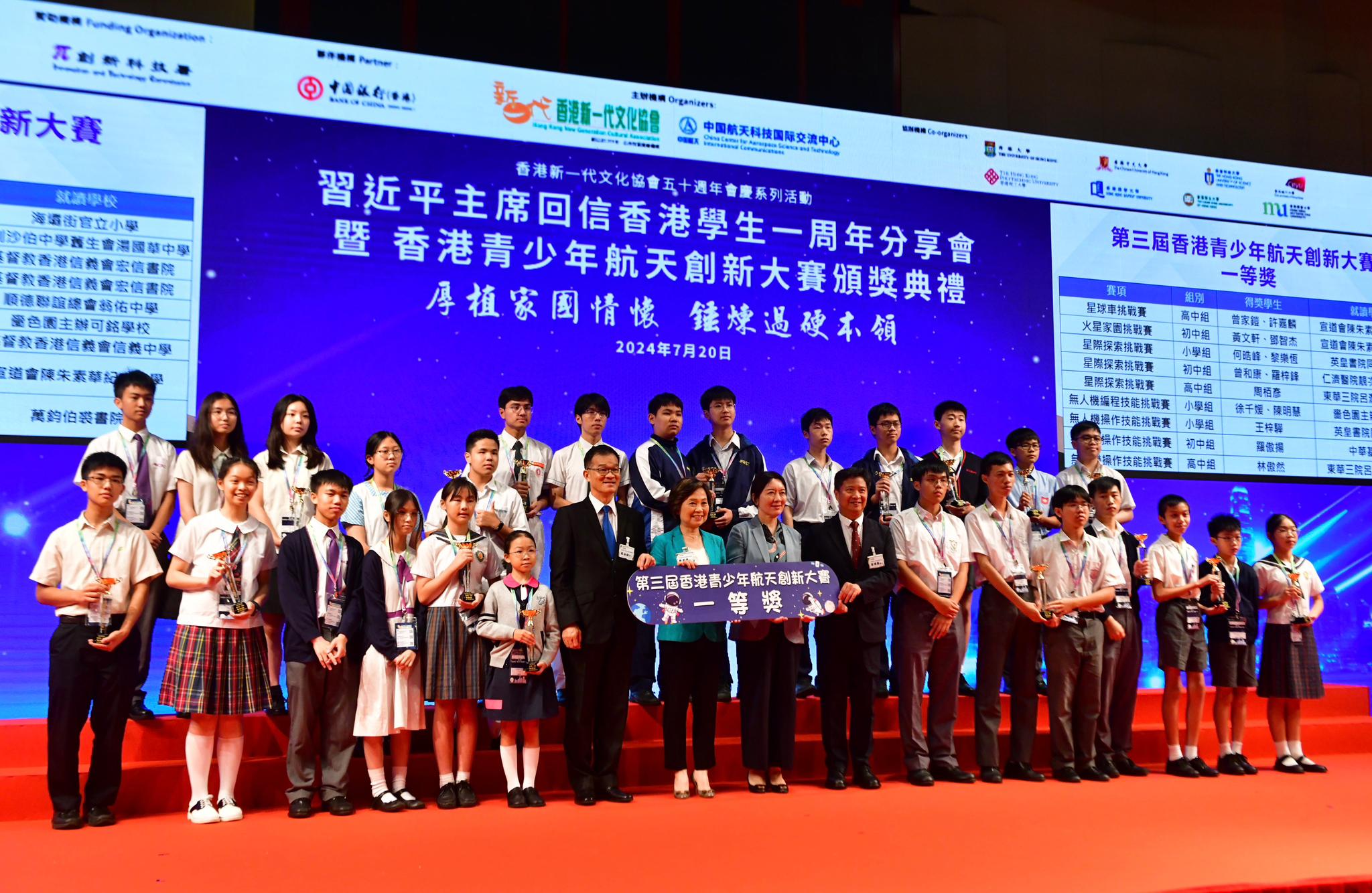 習近平主席回信香港學生一周年分享會暨香港青少年航天創(chuàng)新大賽頒獎典禮今日(20日)舉行,行政長官李家超發(fā)表致辭時表示,回信彰顯習主席對香港同學的關(guān)懷和勉勵,肯定香港愛國教育的努力,是對全香港學校的激勵,是對整個教育界的重要指引。「少年強,則國強」,年輕人是香港的未來,李家超向香港青少年提出三點希望,勉勵他們在以後的學習和人生路奮發(fā)向上。