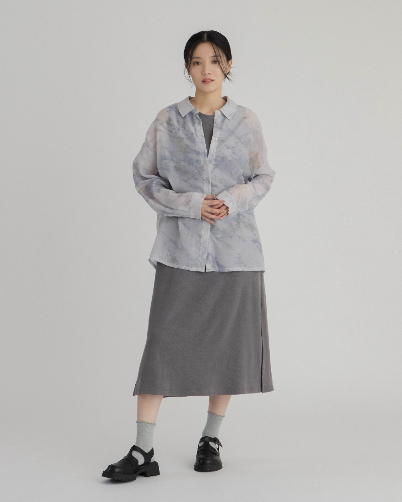 雲(yún)石花紋低調(diào)且具優(yōu)雅知性氣質(zhì),新品將雲(yún)石暈染花紋圖案巧妙地融入各款單品,加上輕透舒適的材質(zhì)清涼感十足。如雲(yún)石暈染花紋長裙,剪裁俐落,具修長效果,輕逸的淺藍色長裙可配基本色系的黑色或灰色短身上衣外,塑造明媚氣息;灰色雲(yún)石花紋恤衫為簡潔中性風,透薄恤衫具防曬作用,配搭牛仔單品或直身版型的連身裙,可展現(xiàn)層次感穿搭。
