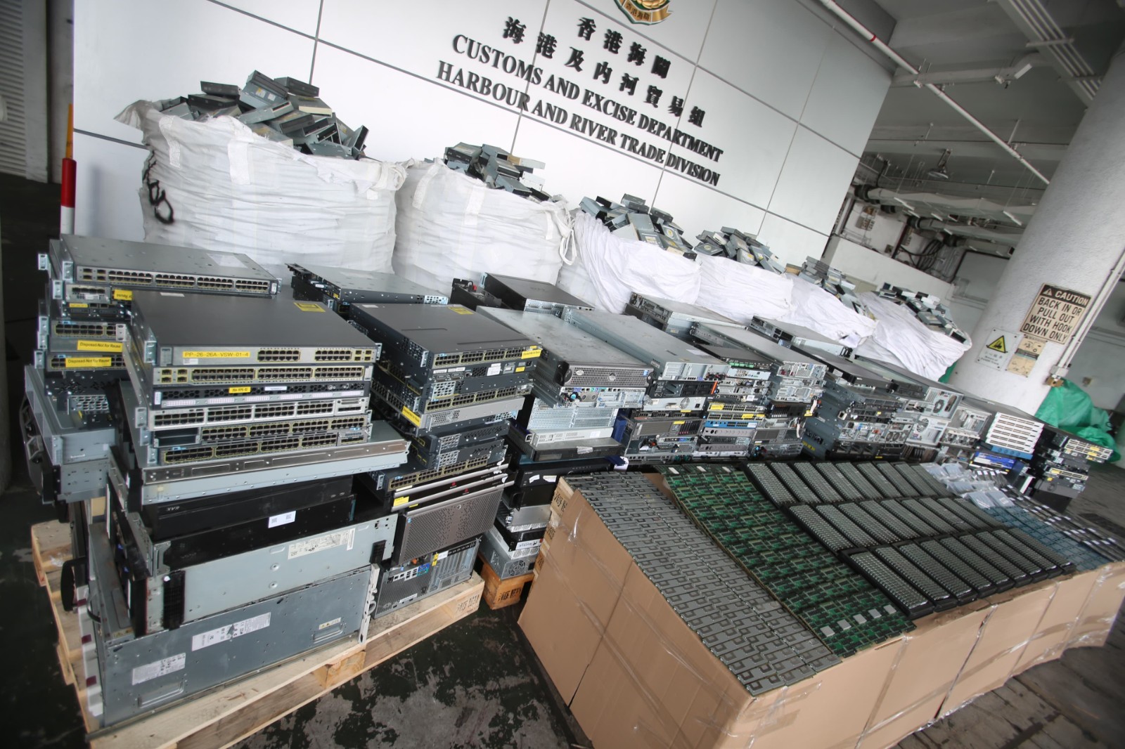海關(guān)偵破一宗遠(yuǎn)洋船走私案,在兩個出口到馬來西亞的貨櫃中,檢獲大批電腦伺服器、記憶體和電子零件,市值約5000萬元。