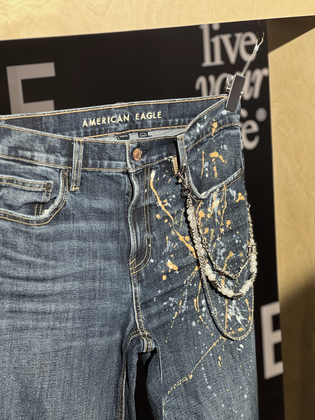 193以白色噴漆將「YOLO」(You Only Live Once,解作活在當(dāng)下,把握每一個機會。)噴在品牌全新的鬆身牛仔褲上,街頭感十足,他亦挑選了Y2K千禧風(fēng)的褲鏈,為整個牛仔造型加分,引領(lǐng)時下新趨勢。Nancy挑選了全新高腰彈性Stovepipe牛仔褲,配搭Y2K白色復(fù)古大Logo圖案T恤,適合初秋微涼的天氣。她把身上穿著的米色及黃色元素的初秋系列,以潑墨方式加到牛仔褲上,並選擇以珍珠為主的褲鏈,為率性的牛仔褲造型加添了少女風(fēng)。兩人設(shè)計的牛仔褲由即日起分別於品牌中環(huán)旗艦店或旺角朗豪坊店內(nèi)展出,為期一個月,粉絲除可到場與偶像設(shè)計的牛仔褲打卡外,還可親手設(shè)計褲鏈,只要購買任何品牌的牛仔褲,即可參加褲鏈工作坊。