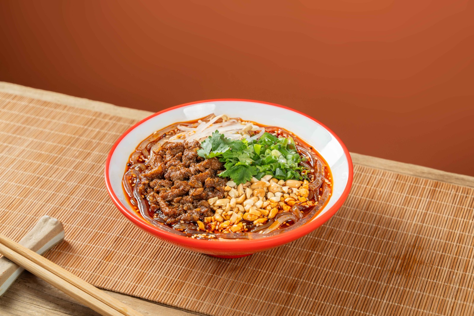 肉醬酸辣粉細(xì)選煙韌彈牙的紅薯粉,配搭酸辣粉調(diào)味料、 榨菜、雜醬、花生碎,當(dāng)然少不了自家秘製的九園辣油子, 湯底酸辣順口, 特別添加滿滿的肉醬,味道香甜,口感豐富。