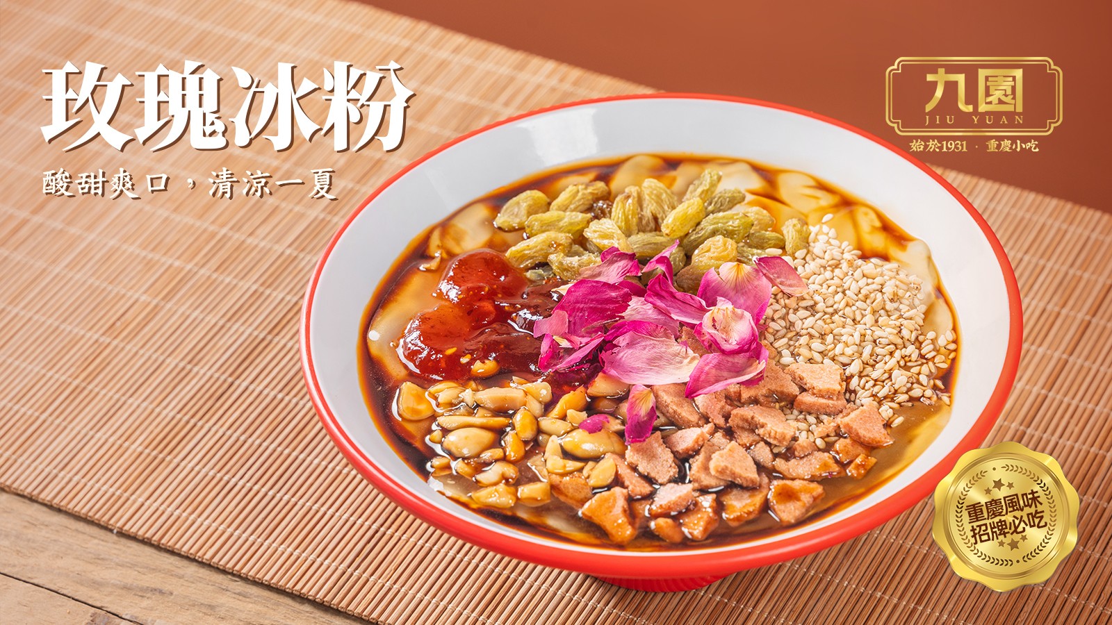 吃重慶小吃必定要試一試特色甜點(diǎn)玫瑰冰粉,冰粉鋪底,加入玫瑰醬,花生碎,山楂碎,葡萄乾等, 調(diào)出來的口味甜絲絲,入口冰冰涼涼, 吃過麻辣 重慶菜式,最適合吃上這個(gè)冰粉,頓覺分外冰爽。(記者:Katherine)
