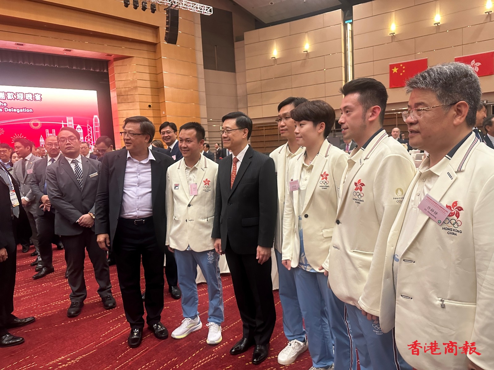2024年巴黎奧運會內(nèi)地奧運健兒代表團今日(29日)抵港,展開三日的訪問活動。今天晚上7時,巴黎奧運會內(nèi)地健兒出席特區(qū)政府舉行的歡迎晚宴。大家爭相著與奧運健兒合影,現(xiàn)場秒變追星現(xiàn)場。(木子攝)
