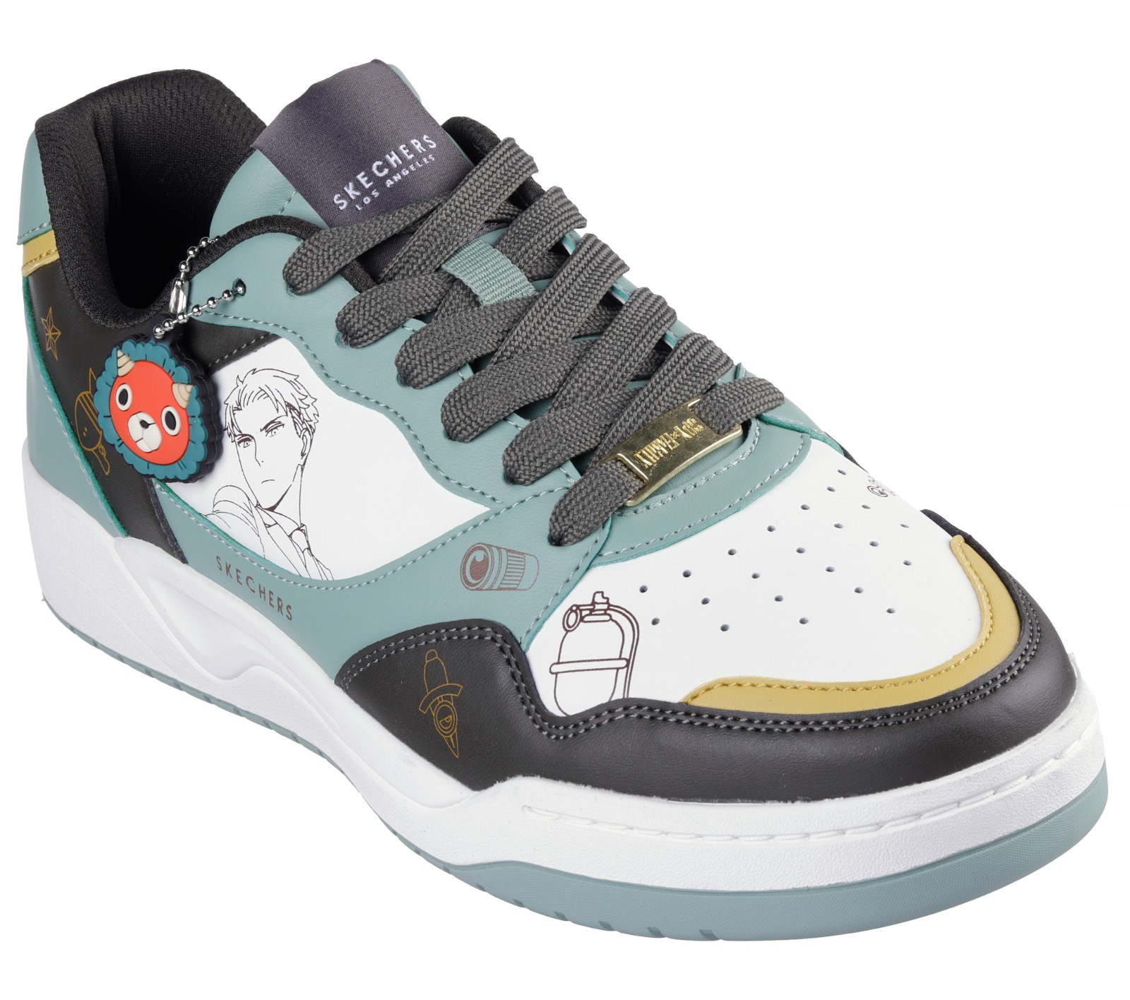 乘著動(dòng)漫的人氣,品牌推出以KOOPA COURT系列作為聯(lián)乘計(jì)劃壓軸登場(chǎng)的鞋款,並邀請(qǐng)品牌大使車(chē)銀優(yōu)試穿。鞋款以美式復(fù)古基調(diào)糅合計(jì)劃主打的時(shí)尚玩味設(shè)計(jì)元素,鞋面採(cǎi)用人造皮革營(yíng)造層次感,分別將內(nèi)外鞋身、後跟、鞋頭氣孔等化成畫(huà)布,飾上三大角色的素描圖案,鞋帶位置的金屬名牌換成金色並印有「SPY×FAMILY」字樣,對(duì)應(yīng)後跟沿邊的相同字樣設(shè)計(jì),同時(shí)掛上奇美拉先生吊飾作點(diǎn)綴。該系列鞋款採(cǎi)用Air-Cooled Memory Foam透氣記憶棉鞋墊、吸震緩衝中底和彈性抓地外底,讓穿著者長(zhǎng)時(shí)間感覺(jué)舒適自在。系列共推出5個(gè)配色,為男女共用鞋款,全部均以男裝尺碼展示,女士可選擇小兩碼鞋款。