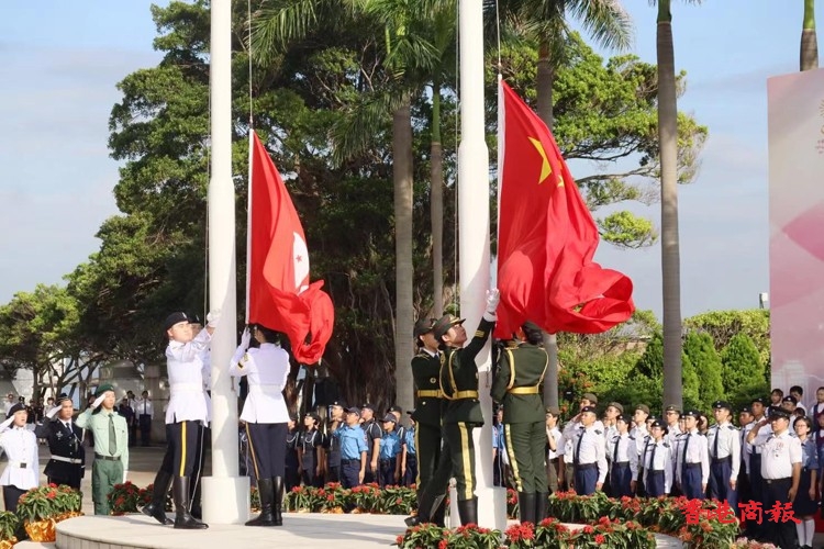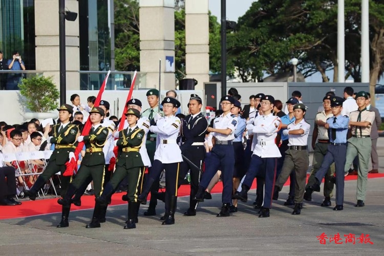 莊家彬透露,升旗禮經(jīng)過很長的選拔和訓練過程,讓過去一年來付出努力練習、進行鍛煉的青少年,向大眾展示訓練成果。被問到今天氣氛如何,莊家彬回應指,昨天(13日) 綵排期間有雷暴警告,還擔心會影響活動進行,慶幸今日天朗氣清,天氣不算太熱,制服團體的隊員均精神奕奕,升旗前一刻陽光普照,形容「天公造美」。