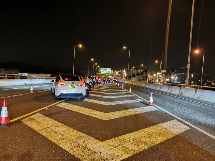 警方新界南總區(qū)交通部執(zhí)行及管制組特遣隊(duì)人員為打擊酒後及毒後駕駛,一連兩日(14日及15日)在區(qū)內(nèi)主要幹道設(shè)置路障及重點(diǎn)巡查酒吧區(qū),截查可疑車輛,並向駕駛?cè)耸窟M(jìn)行酒精呼氣測(cè)試,以打擊相關(guān)罪行。