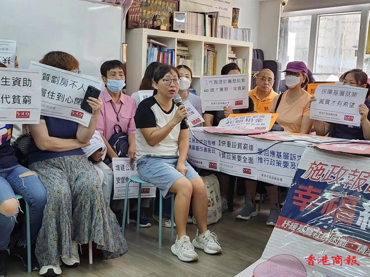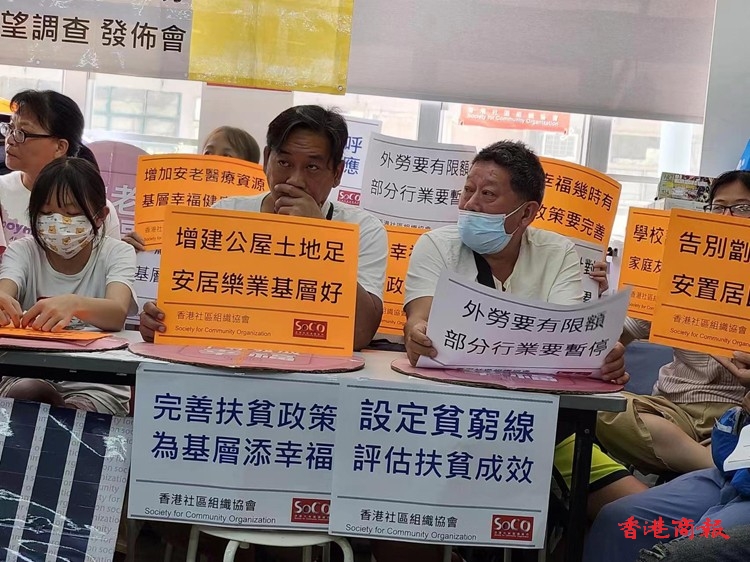 頂圖圖説:香港社區(qū)組織協(xié)會(huì)今早召開記者會(huì),公布基層市民對(duì)特區(qū)政府過去兩年施政評(píng)分,及新一份《施政報(bào)告》的期望。(記者 葉家亨攝)