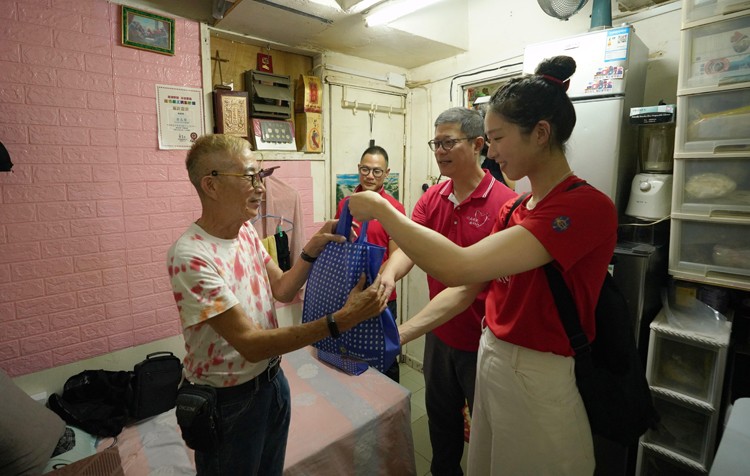 頂圖圖説:馬會義工隊於周末到深水埗區(qū)進行長者中秋探訪活動。