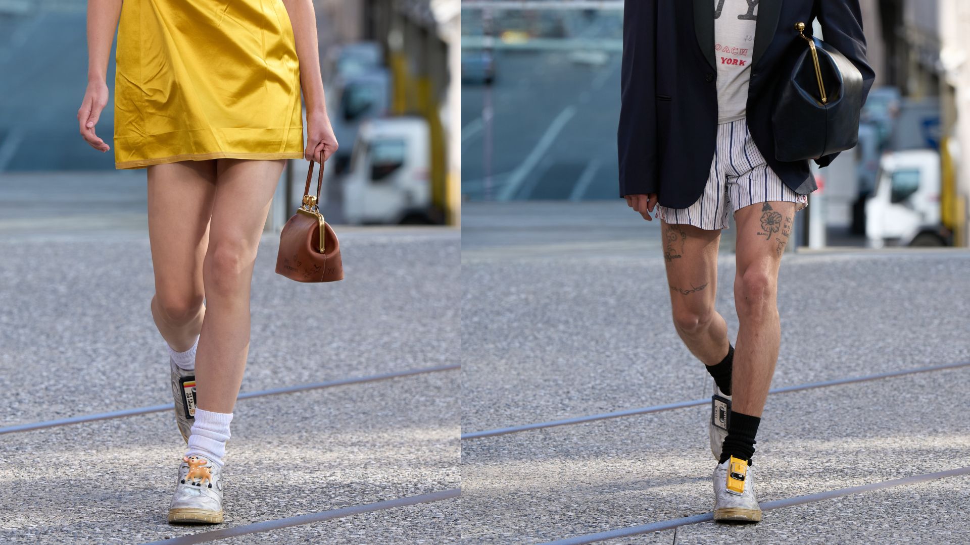 配飾鞋履方面,品牌推出了全新款式的Chain Tabby 26手袋,採(cǎi)用軟粒面皮革製作,金屬鏈肩帶設(shè)計(jì)彰顯品牌特色。此外,F(xiàn)rame手袋系列也進(jìn)行了升級(jí),推出了帶有男裝風(fēng)格的小型公事包和背包。此次也推出了新款Soho運(yùn)動(dòng)鞋,設(shè)計(jì)靈感來(lái)自80年代末和90年代初期的綜合運(yùn)動(dòng)鞋,在致敬經(jīng)典的同時(shí),也維持了品牌的標(biāo)誌性風(fēng)格。Soho運(yùn)動(dòng)鞋專為時(shí)裝秀系列做了特別處理,採(cǎi)用可迴圈再生皮革製作,並擴(kuò)展了貼紙以及計(jì)程車、膠帶等一系列的樹(shù)脂配件,在致敬經(jīng)典的同時(shí)保持了品牌的標(biāo)誌性風(fēng)格。(記者:Katherine)