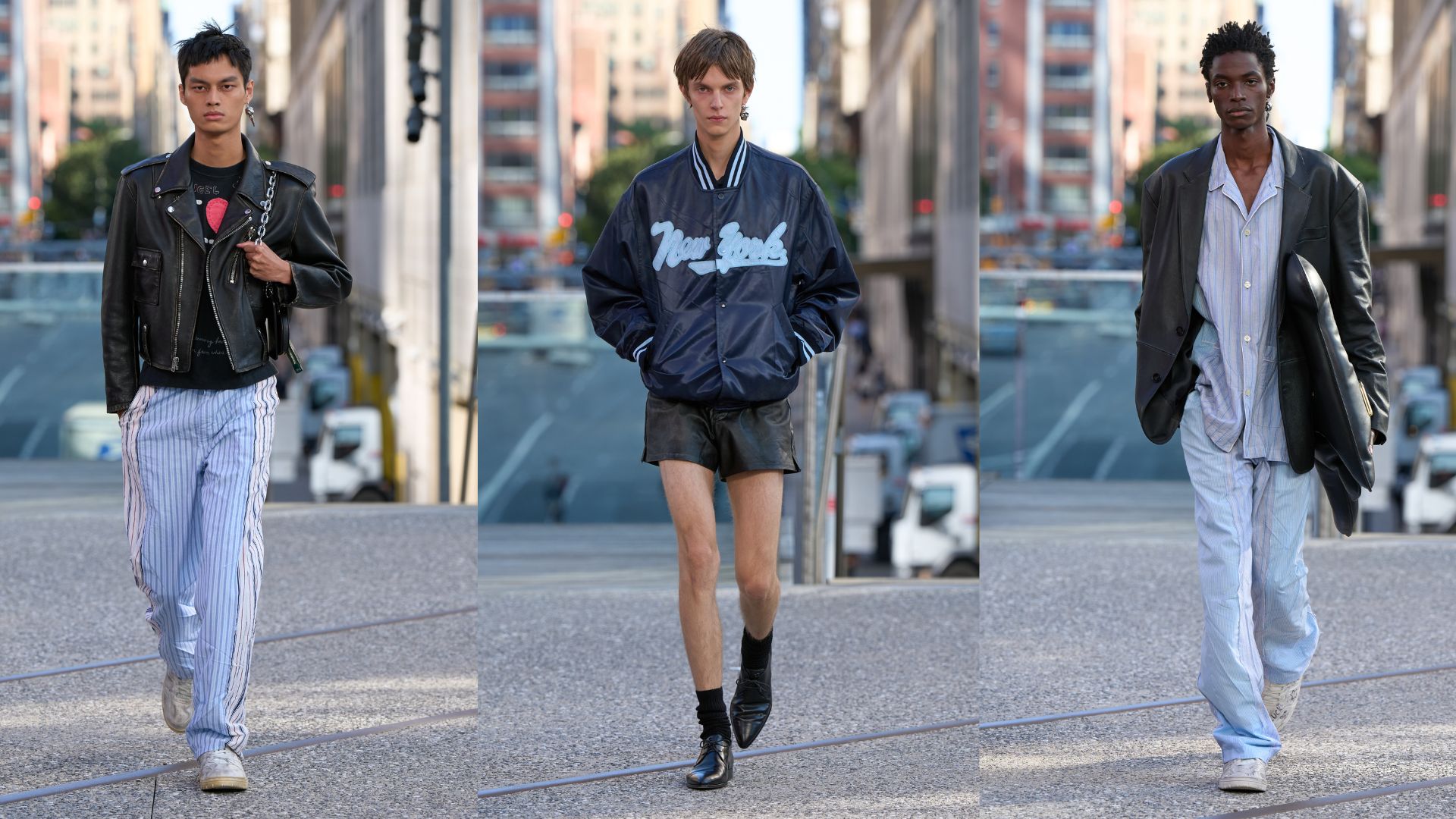 印花T恤演繹了標(biāo)誌性流行和搖滾音樂(lè)元素,並將做舊的摩托夾克與直筒疊穿。 另一款文字復(fù)古裝飾的白色T恤, 向20世紀(jì)40年代服飾風(fēng)格致敬的同時(shí),又展現(xiàn)DIY龐克美學(xué)。該系列亦是前兩季的設(shè)計(jì)理念,包括利用再生皮革和麂皮打造的開(kāi)衫夾克,以及對(duì)尾燕服夾克和「睡衣風(fēng)」長(zhǎng)褲進(jìn)行了全新設(shè)計(jì),採(cǎi)用的皺褶和褪色處理使設(shè)計(jì)更充滿個(gè)性。
