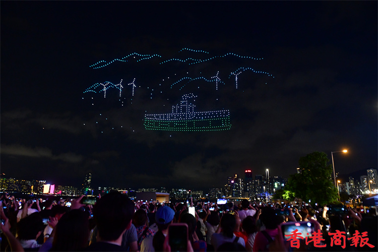 為慶祝國慶75周年,旅遊發(fā)展局今日晚上8時(shí)在灣仔海濱舉行長約15分鐘的「香港馬騰盛世」無人機(jī)表演,吸引大批市民與遊客觀賞。
