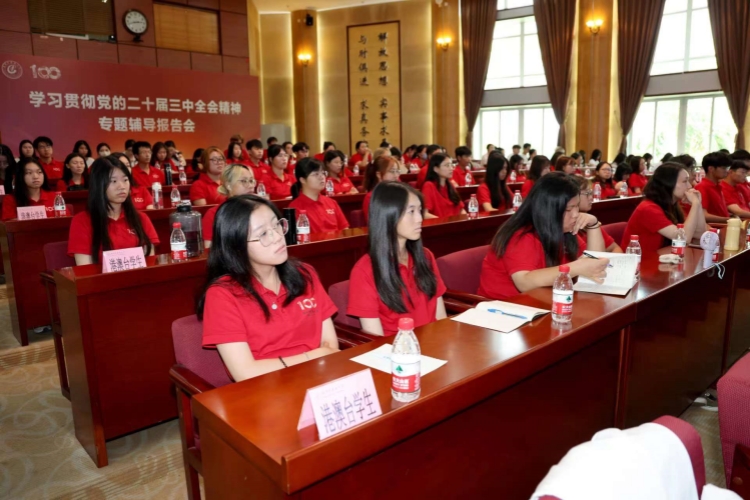 廣州中醫(yī)藥大學(xué)2024級全體香港籍新生、學(xué)生黨員代表、青馬班學(xué)員代表和思政課教師代表等200餘人在現(xiàn)場參加。各單位師生在分會場通過線上方式集中觀看報(bào)告會。(記者  黃裕勇)