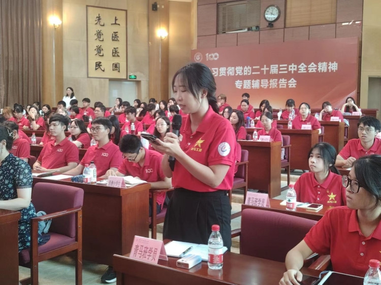 「在發(fā)展新質(zhì)生產(chǎn)力的過程中,香港青年可以通過哪些方式探索中醫(yī)藥傳承,成為文化傳承與創(chuàng)新的主力軍?」「香港青年如何參與社會治理,為改善民生、促進(jìn)社會和諧穩(wěn)定貢獻(xiàn)自己的力量?」近日,學(xué)習(xí)貫徹黨的二十屆三中全會精神專題輔導(dǎo)報(bào)告會在廣州中醫(yī)藥大學(xué)大學(xué)城校區(qū)舉行。廣州中醫(yī)藥大學(xué)2024級全體香港籍新生與作專題輔導(dǎo)報(bào)告的廣東省社科院研究員陳甫進(jìn)行互動交流。