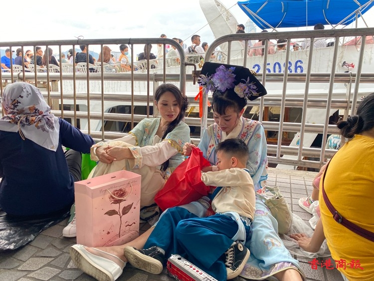 來自深圳的李小姐和朋友帶著小朋友早上8時穿著華服過關(guān)到海港城一帶遊玩。