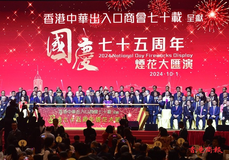 由香港中華出入口商會贊助的國慶煙花匯演今晚(1日)舉行,行政長官李家超聯(lián)同多名官員,以及中聯(lián)辦主任鄭雁雄、中央駐港國安公署署長董經(jīng)緯、外交部駐港特派員崔建春、解放軍駐港部隊司令員彭京堂等出席煙花匯演晚會。