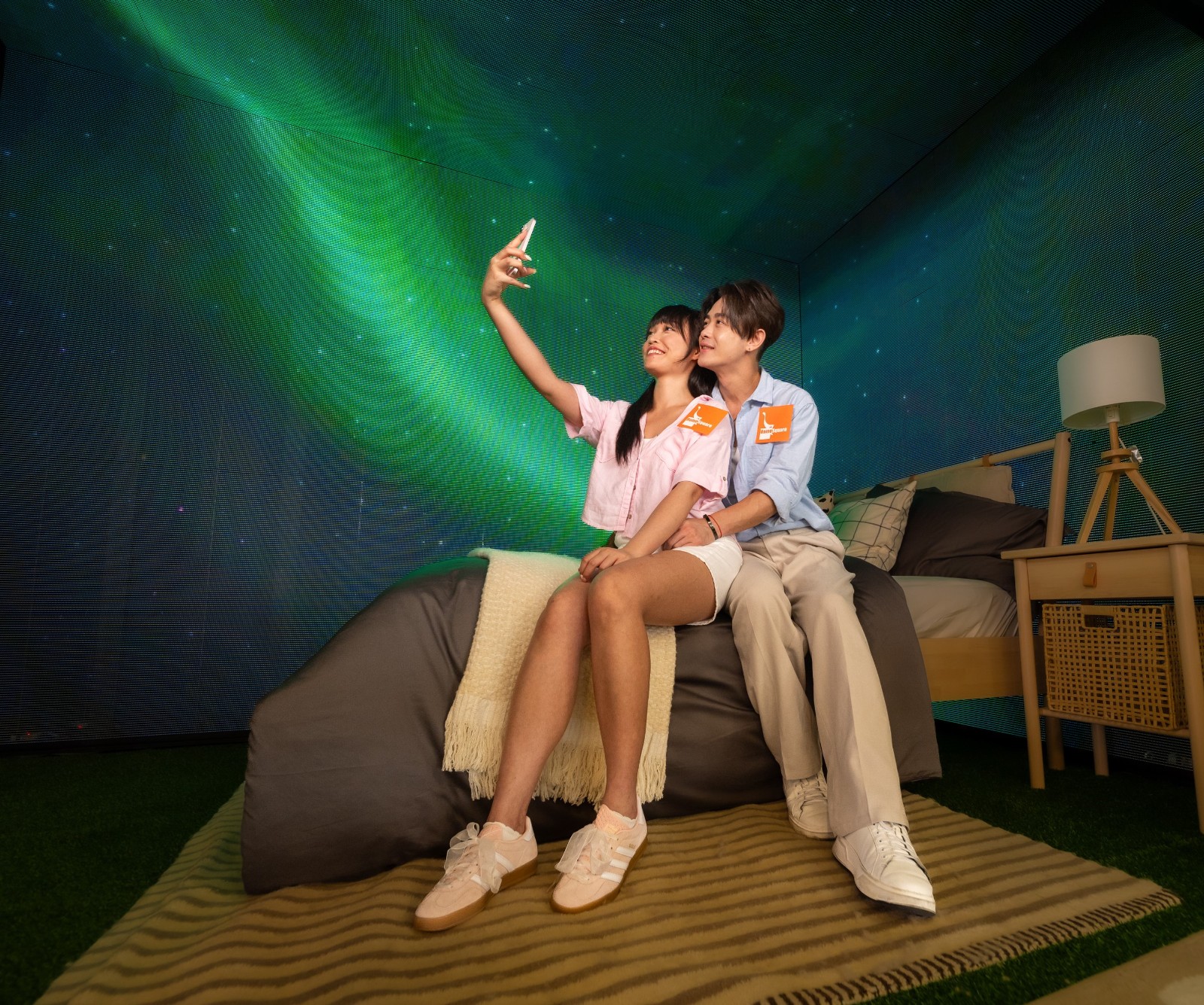 不少人喜愛到歐洲探索自然奇觀,療癒身心靈。場內的「極光流星館」營造在北歐簡約風小屋內欣賞北極光及流星雨的場景,小屋以沉色主調與大地色系家具展現簡潔風格,木質圓桌、仿草地毯和房內的綠色植物營造和諧氛圍。躺在睡床看夜空星星,並在浩瀚的流星雨下與摯愛許願。繁星過後,將上演夢幻的北極光,絢麗的綠色極光在黑夜中舞動,相當震撼,適合打卡留念。沉浸式欣賞流星雨和北極光同時放鬆心情,在這舒適的小屋內進入甜美的夢鄉(xiāng)。
