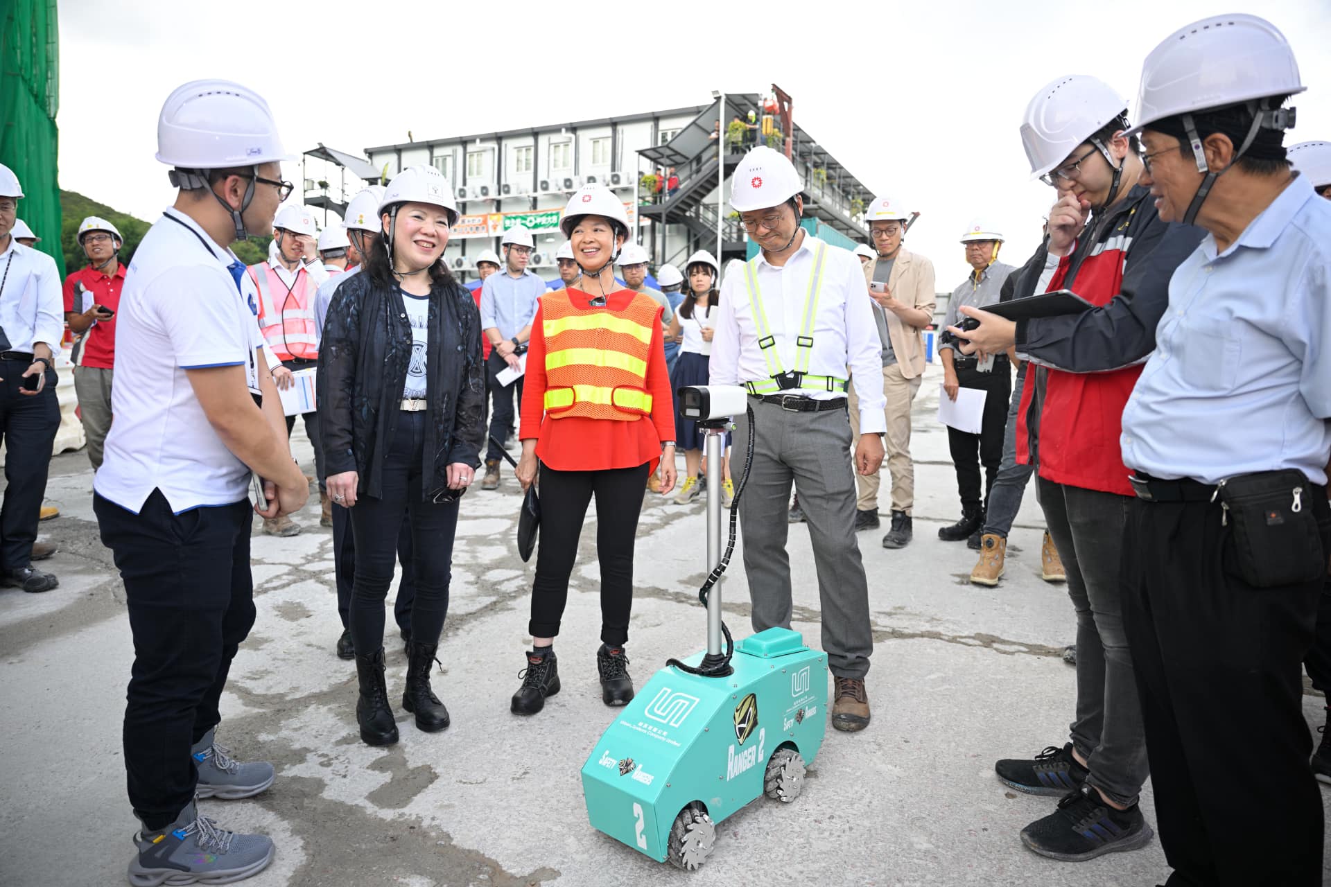 另外,何永賢一行人還視察了MiC的吊運(yùn)與安裝、參觀了示範(fàn)單位,並與現(xiàn)場的建築機(jī)械人互動(dòng)。