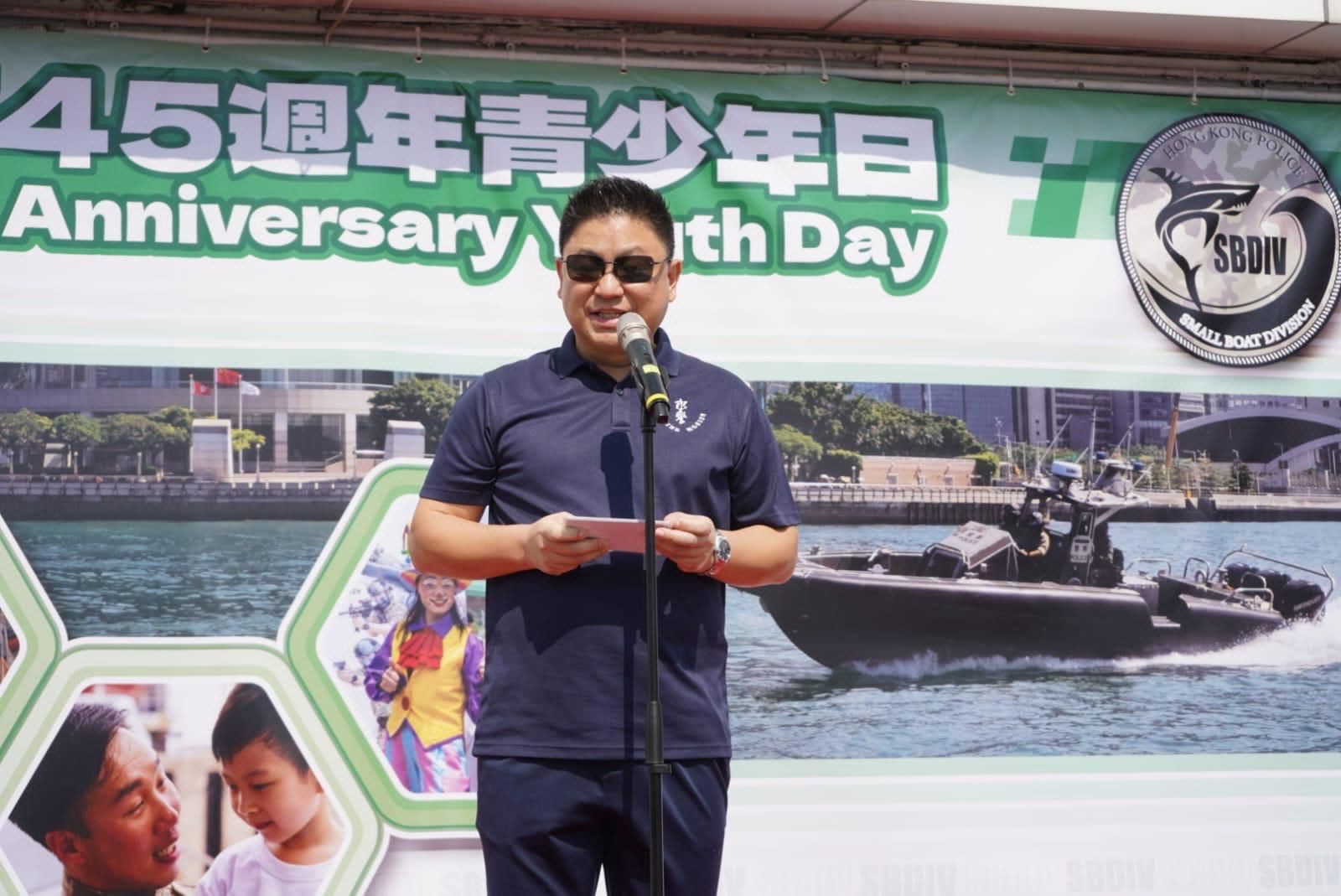 今日(12日)是水警小艇分區(qū)45周年青少年日,活動(dòng)在小艇分區(qū)總部舉行,水警總區(qū)指揮官吳卓衡助理處長(zhǎng)主持開幕儀式,帶同水警吉祥物Max跟青少年接觸,讓他們加入認(rèn)識(shí)水警工作範(fàn)疇。