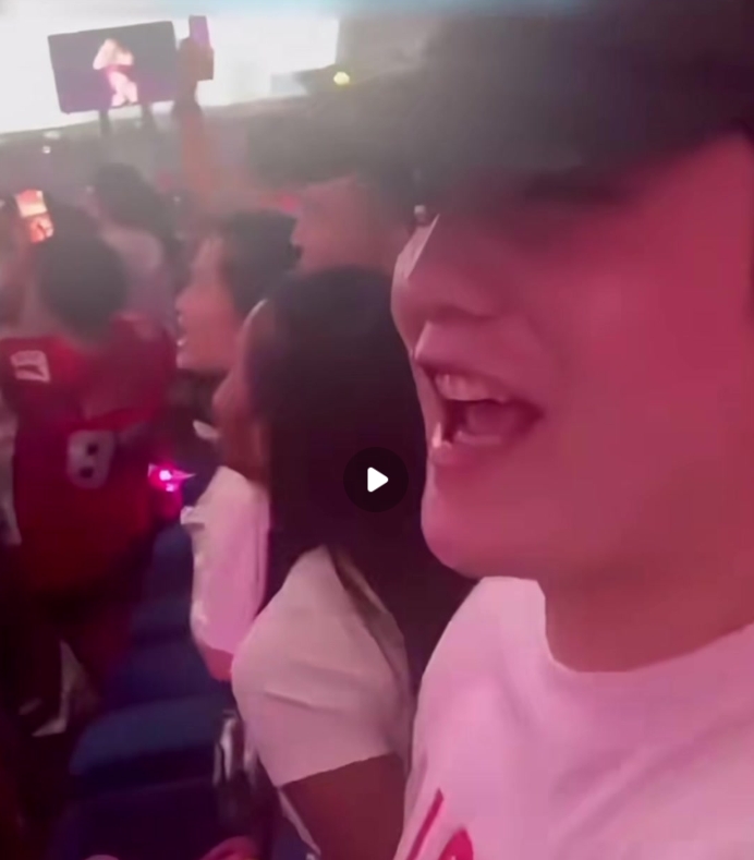 樊振東在泰勒演唱會高聲跟唱視頻截圖。