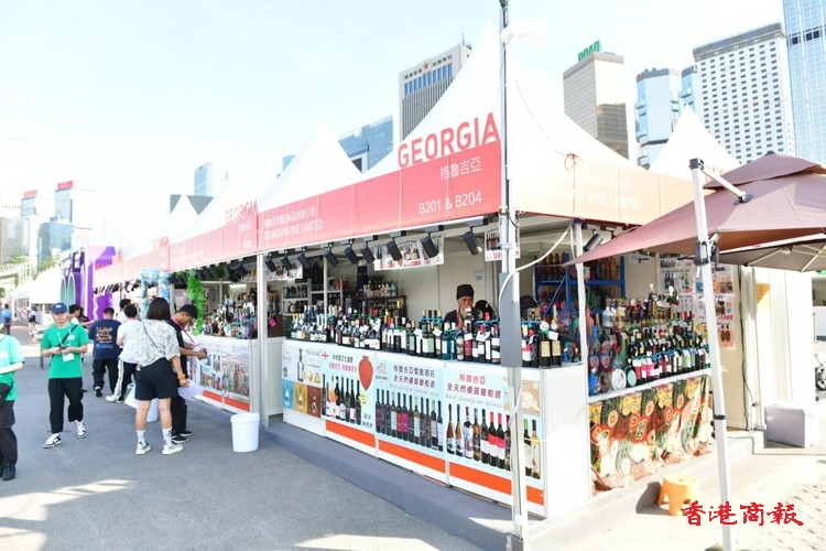 有來自格魯吉亞的參展商售賣各式各樣的美酒。(記者 崔俊良攝)