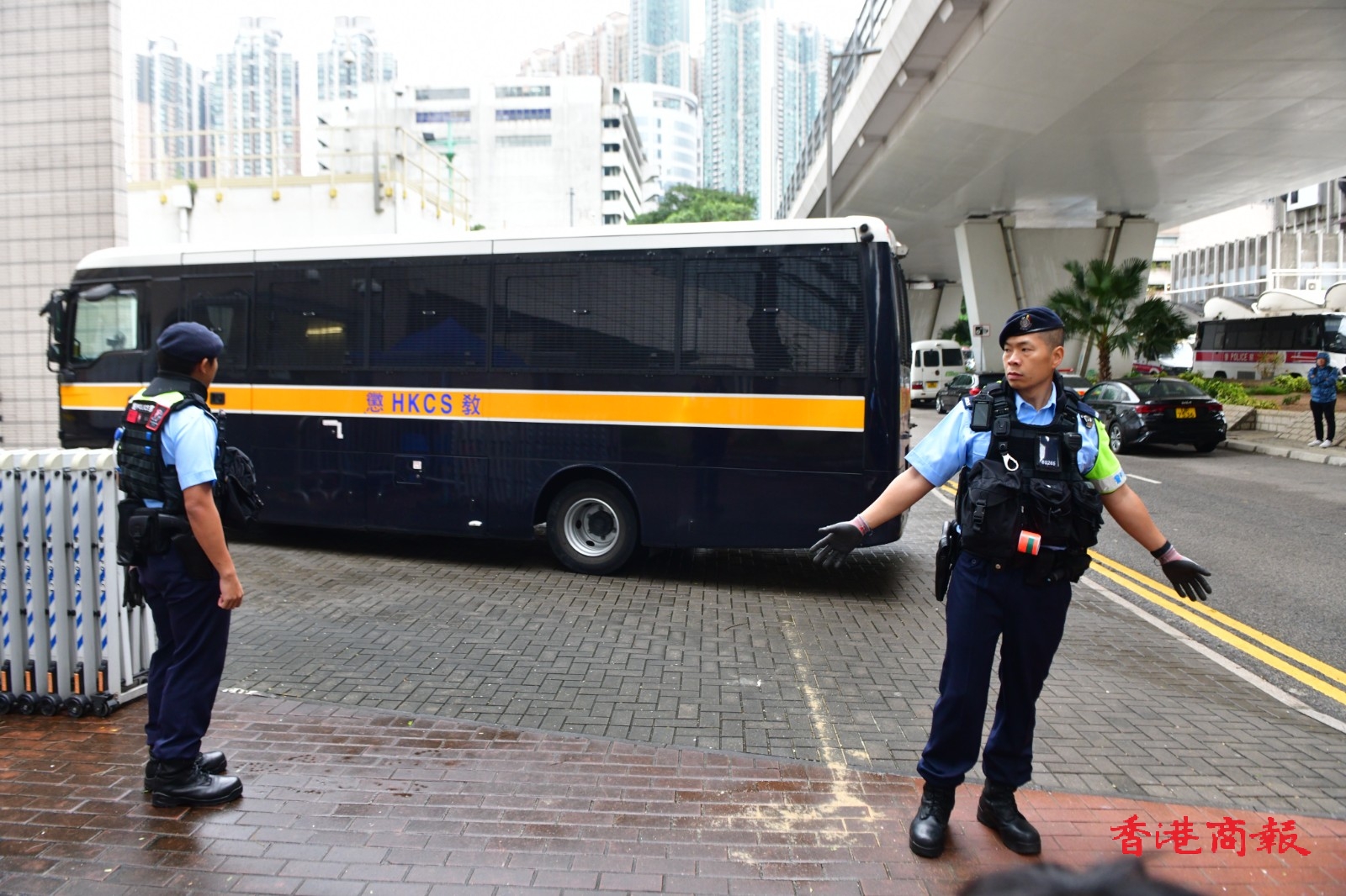 「35+」串謀顛覆國家政權案今日(19日)上午10時在西九龍裁判法院宣判,法官對45名被告宣布具體刑期。今天天氣不好,但仍然有不少人冒雨到西九法院,除了傳媒家屬,還有不少公眾人士,另外也有歐盟的人員。警方在現(xiàn)場加強戒備,並劃出專門的等候區(qū)域,警員持槍守衛(wèi),進入法院所有的車輛和人員都要經(jīng)過安檢。