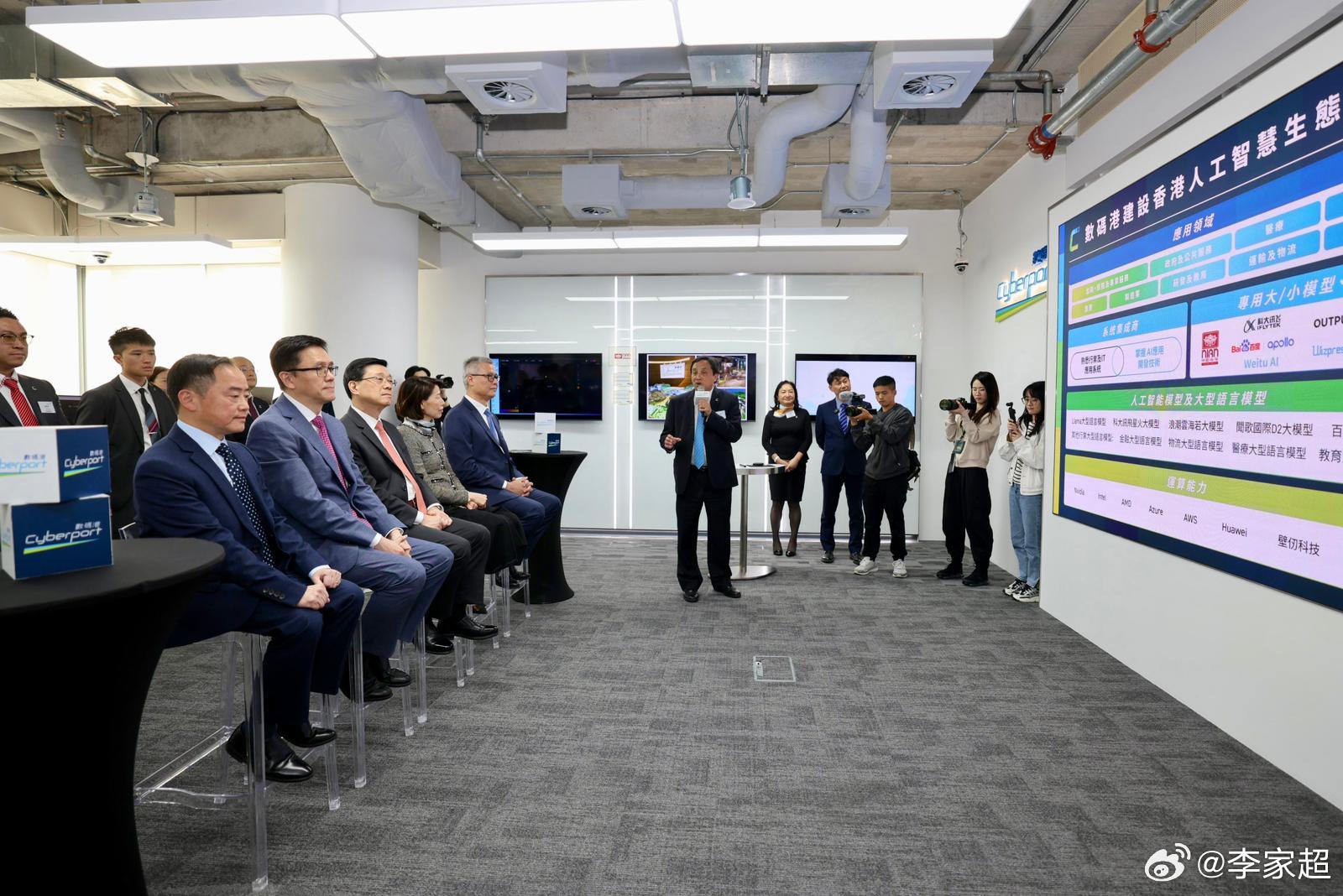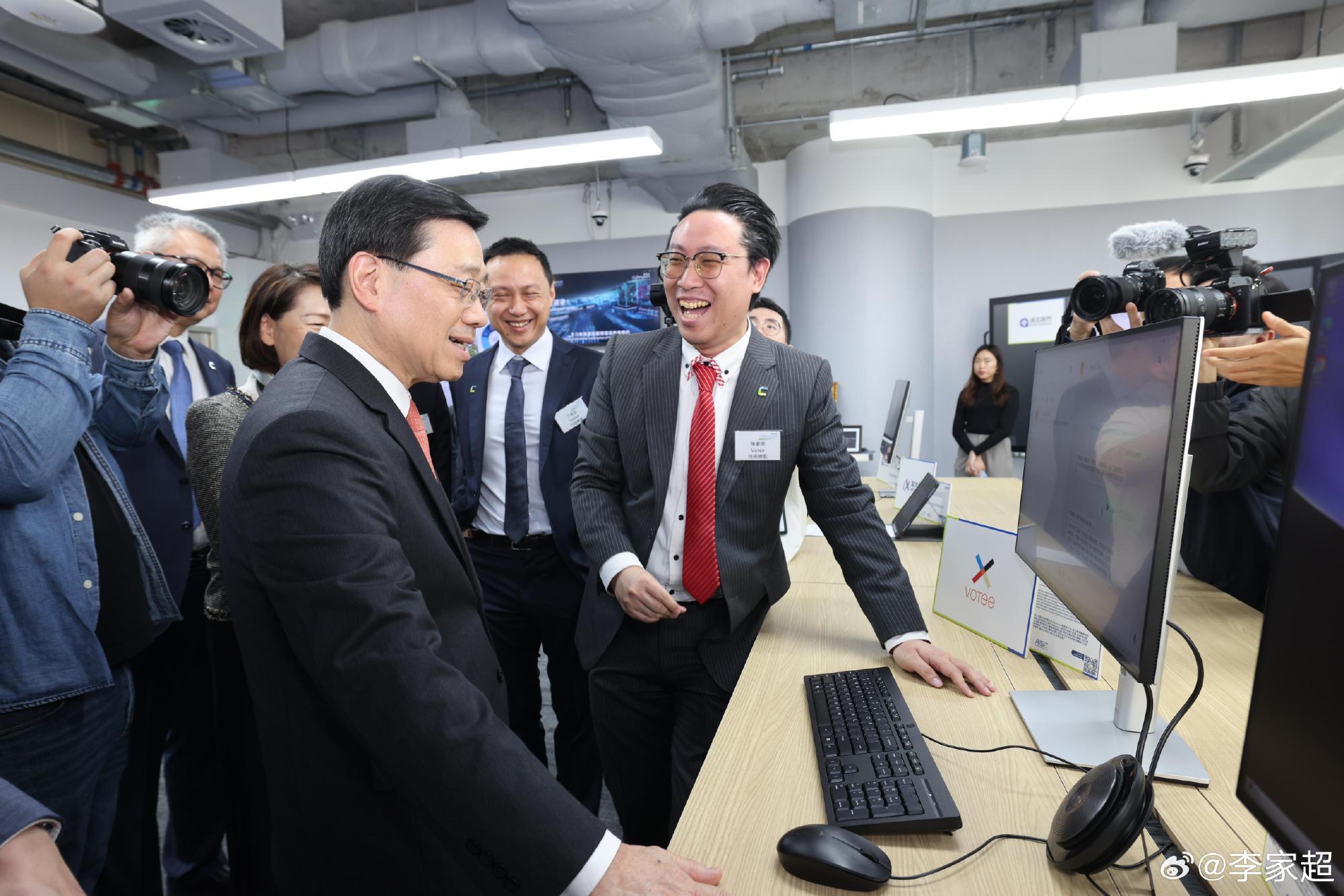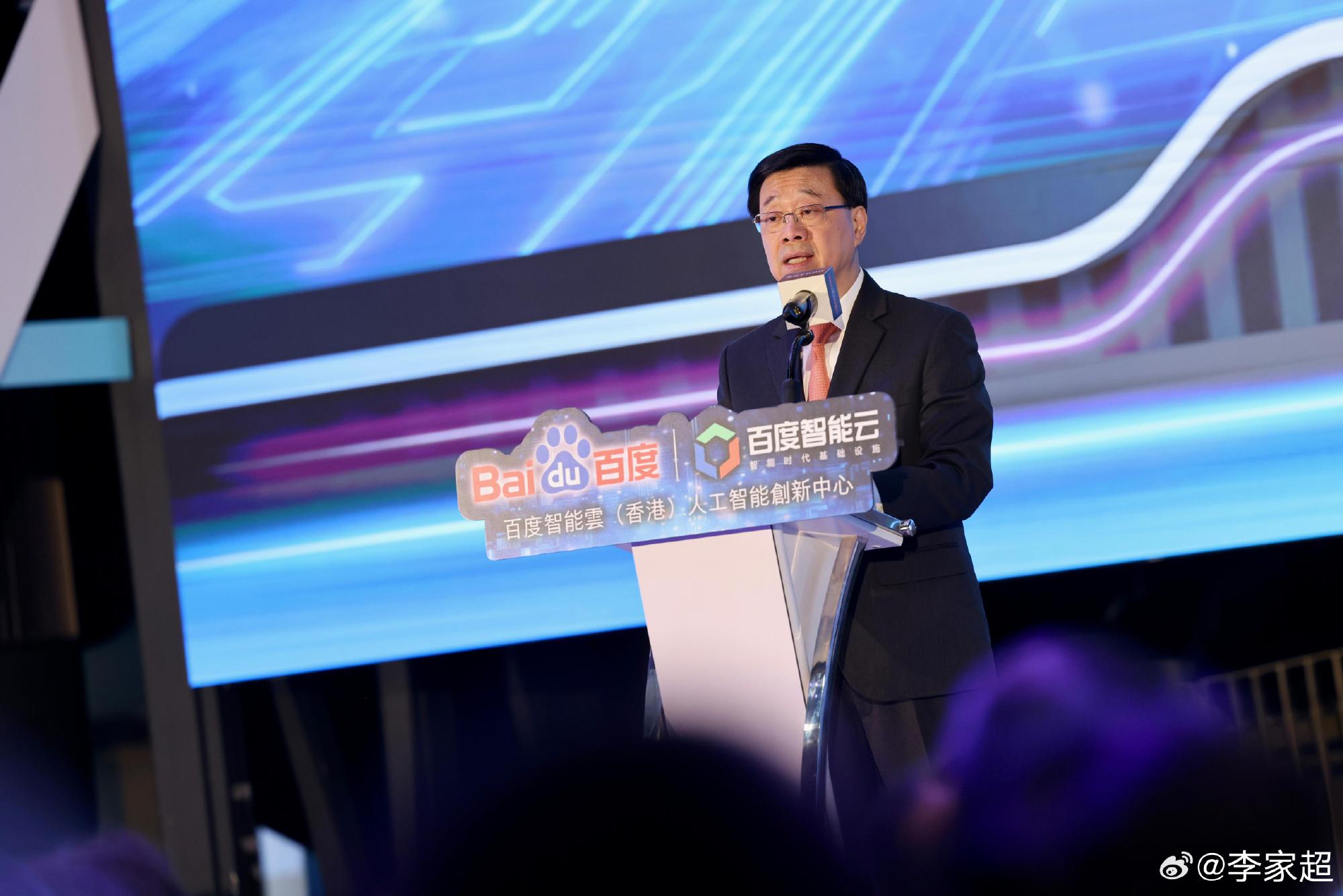 李家超與創(chuàng)新科技及工業(yè)局局長孫東一同前往數(shù)碼港,視察人工智能超算中心和人工智能實驗室,並出席香港人工智能科普培訓(xùn)基地成立典禮及百度智能雲(yún)(香港)人工智能創(chuàng)新基地落成簽署儀式。