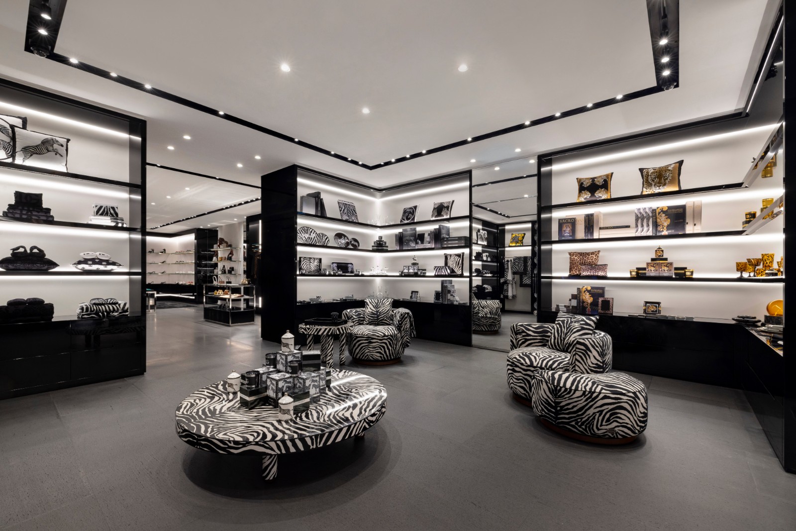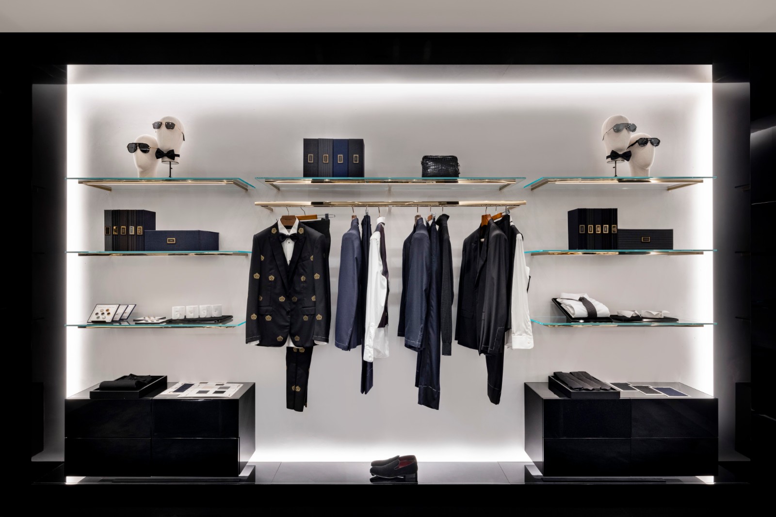 店舖結(jié)合品牌精髓與時尚高雅品味,處處彰顯其標誌性DNA,外牆和地板均採用Basaltina火山巖石點綴。店內(nèi)的牆壁以黑色亮漆為主調(diào),與白色的灰泥牆和全身鏡形成鮮明對比。加上黑色毛呢軟墊座椅、覆蓋明亮鏡面的陳列櫃,及綴以金屬飾面的家具,營造出寬闊高雅的購物空間,男裝和女裝系列的衣服配飾均區(qū)隔分明且具特色。店內(nèi)還設(shè)珠寶專區(qū),Casa系列的家具則陳列於專門店的正中間位置。 (記者、部分圖片:Janice)