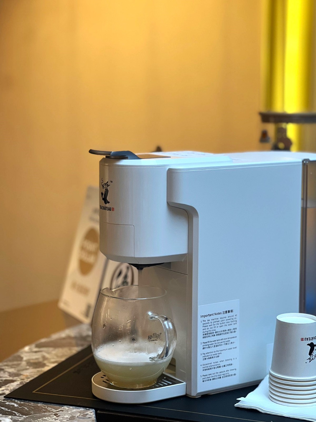 茶機機身纖巧,僅有12厘米寬度,易於存放,以純淨珍珠白為主調,配以磨砂機身,易於保養(yǎng)清潔,極簡設計無論是農曆新年期間招待親朋,還是日常在廚房、客廳或辦公室使用皆可??刹鹗酱笏淙萘窟_900毫升,減少了持續(xù)補水的次數(shù),每次使用可沖泡6至7杯熱飲,同時可容納最高13cm的飲品容器,適合一家大小共同品茗。