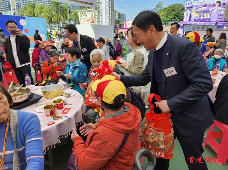 潘權(quán)輝親力親為,為長(zhǎng)者送上福袋。