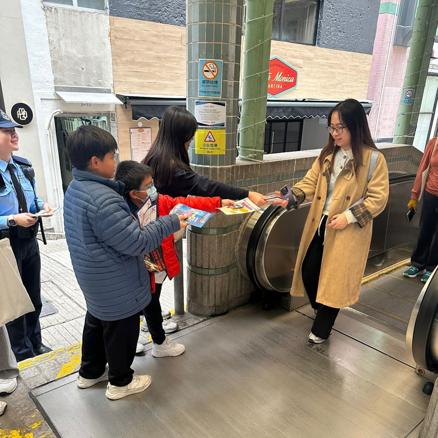 中區(qū)警區(qū)軍裝部人員聯(lián)同少年警訊會(huì)員昨日(1日)前往中環(huán)蘇豪區(qū)一帶進(jìn)行防騙防罪宣傳。防騙防罪隊(duì)伍由大館出發(fā),經(jīng)史丹頓街蘇豪區(qū)、鴨巴甸街再折返大館,沿途向遊客及市民派發(fā)防騙防罪傳單及宣傳品,除提醒他們保管財(cái)物外,亦提供防騙訊息。