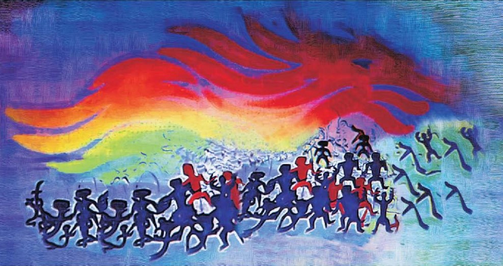 疊象藝術(shù)以創(chuàng)新思維創(chuàng)作疊象畫(huà),使?jié)h字在書(shū)面語(yǔ)言上有圖像,出現(xiàn)折光、重疊的造型美,視覺(jué)上虛實(shí)並存,藝術(shù)上展現(xiàn)抽象感。蘇子雄對(duì)記者表示,自己研究及探索疊象藝術(shù)已逾20年,漢字的疊象藝術(shù)與書(shū)法概念不同。「前者既能記錄語(yǔ)言、傳播信息,又能凸出每個(gè)漢字的獨(dú)特形象。書(shū)法藝術(shù)是在書(shū)寫(xiě)中,把漢字符號(hào)的文字以具形象感的藝術(shù)方式呈現(xiàn)?!顾弥丿B的漢字形成新圖像,打破書(shū)法藝術(shù)只呈現(xiàn)漢字字形的格局。如《洞察世界》以甲骨文「一家親」為核心元素,呈現(xiàn)出「眼睛」的構(gòu)圖畫(huà)家,塑造以「人」為主題的畫(huà)作?!陡5健酚枚鄠€(gè)福字和臉譜構(gòu)圖,凸顯中國(guó)傳統(tǒng)文化的「福到」及「接?!埂?/p>